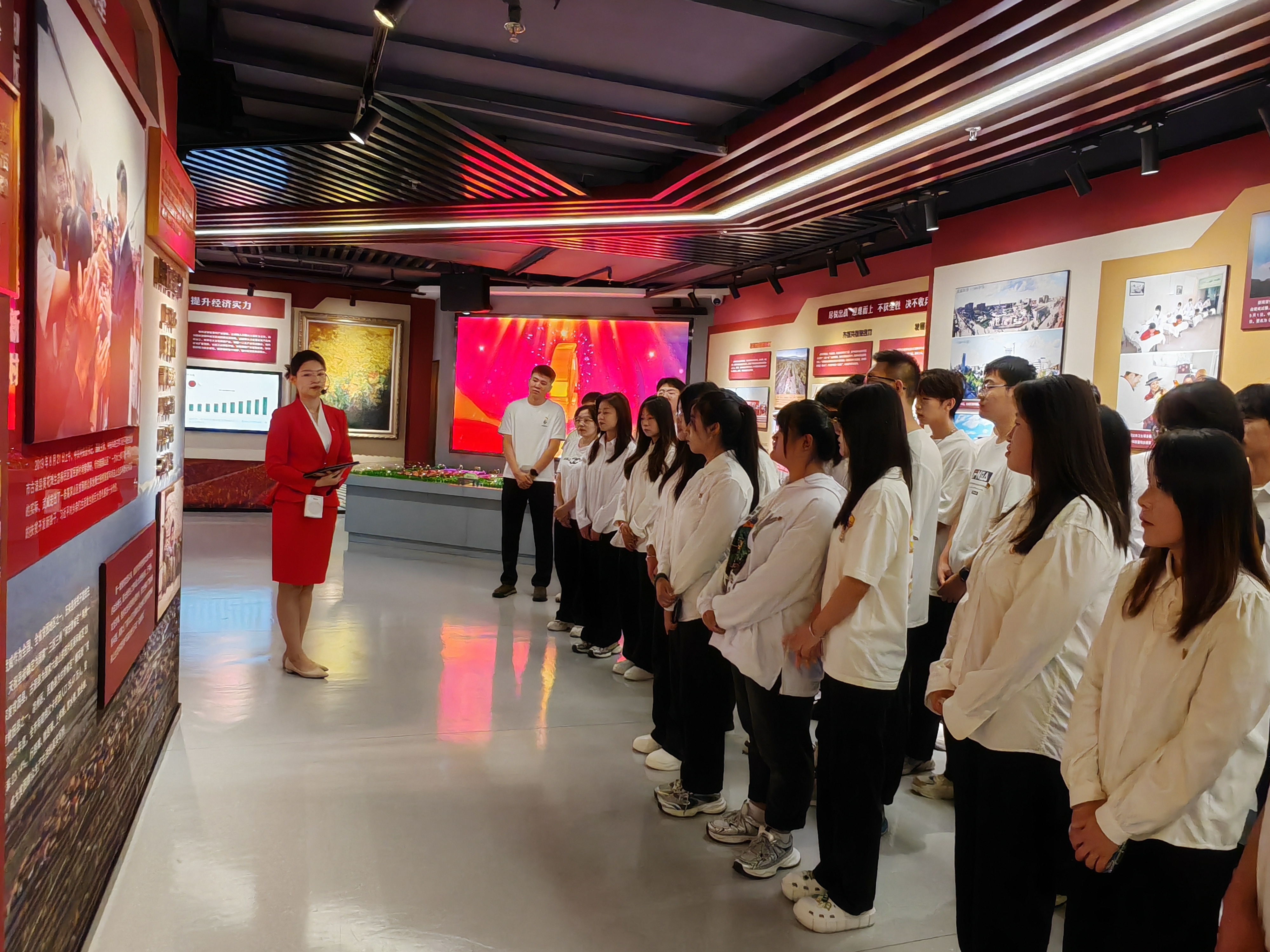 師生們?cè)谥v解員的帶領(lǐng)下依次參觀了教育館的序廳、主廳、智慧黨建廳、紅色文創(chuàng)廳、尾廳以及初心講堂。每一個(gè)展廳都承載著豐富的歷史內(nèi)涵,記錄了中國(guó)共產(chǎn)黨在不同歷史時(shí)期帶領(lǐng)人民取得的偉大成就。同學(xué)們認(rèn)真聆聽講解員的解說(shuō),仔細(xì)觀看館內(nèi)展出的珍貴圖片、文獻(xiàn)資料、歷史實(shí)物和視頻影像,全面了解了武威人民在黨的領(lǐng)導(dǎo)下,一步步克服困難、取得勝利的過(guò)程。隨后師生們觀看了紅色專題片《先鋒之光》。影片生動(dòng)再現(xiàn)了無(wú)數(shù)革命先烈為了國(guó)家獨(dú)立、民族解放和人民幸福所付出的巨大犧牲與貢獻(xiàn),從影片中汲取了愛國(guó)、拼搏、團(tuán)結(jié)和克難的精神力量。