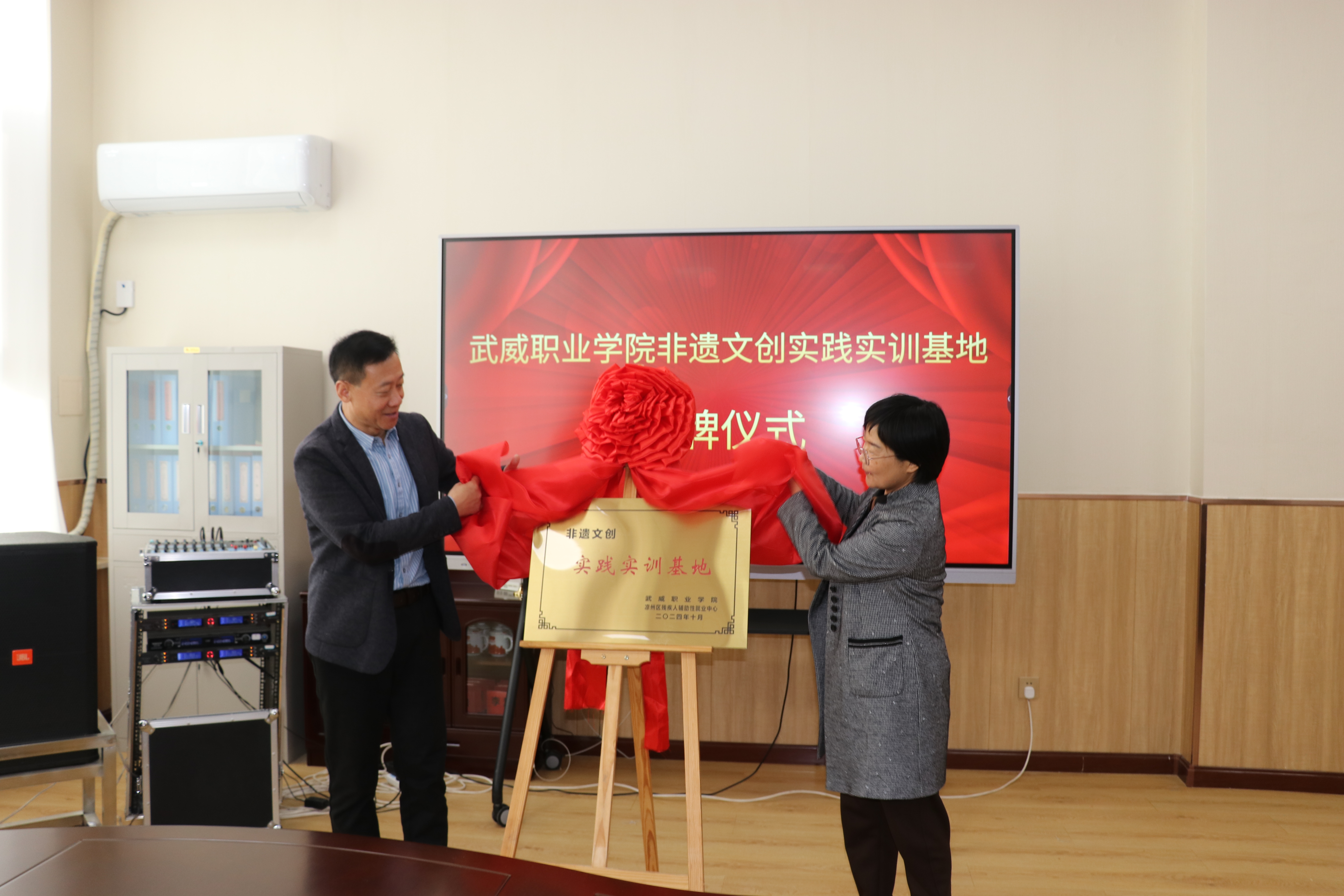 會(huì)上,武威市殘疾人聯(lián)合會(huì)副理事長柯長文,武威職業(yè)學(xué)院黨委委員、副校長何毅為“非遺文創(chuàng)實(shí)訓(xùn)實(shí)踐基地”揭牌。