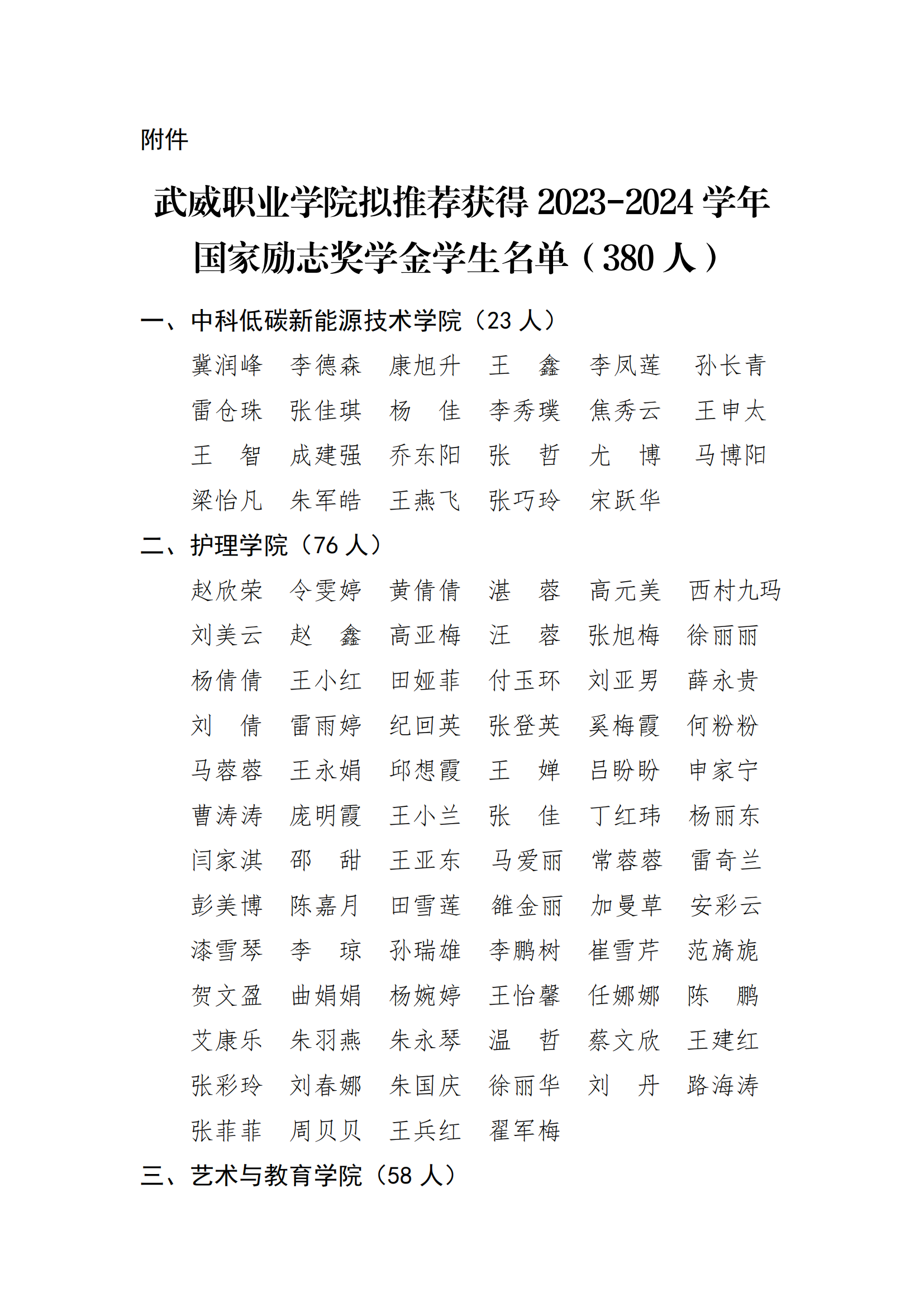 武威職業(yè)學(xué)院關(guān)于2023-2024學(xué)年學(xué)院獎學(xué)金評選結(jié)果的公示