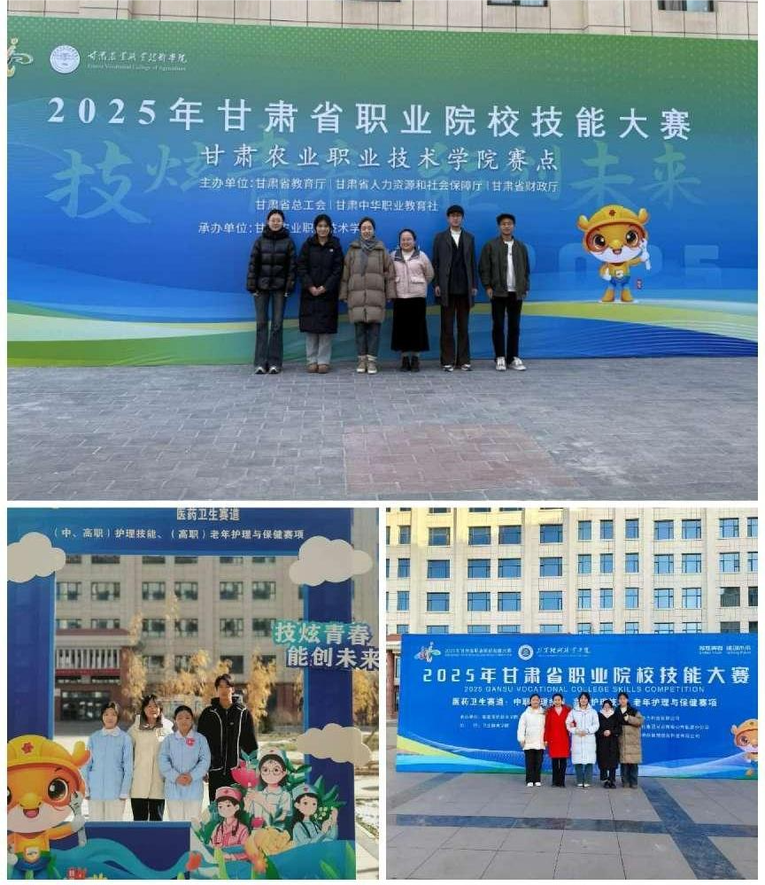 近日,由甘肅省教育廳、人社廳、財政廳等5部門主辦的2025年全省職業(yè)院校技能大賽圓滿閉幕。我院共有5組師生分別參加了臨夏現(xiàn)代職業(yè)學院賽點醫(yī)藥衛(wèi)生賽道中護理技能與老年護理與保健賽項、甘肅農業(yè)職業(yè)技術學院賽點公共管理組健康養(yǎng)老照護賽項。