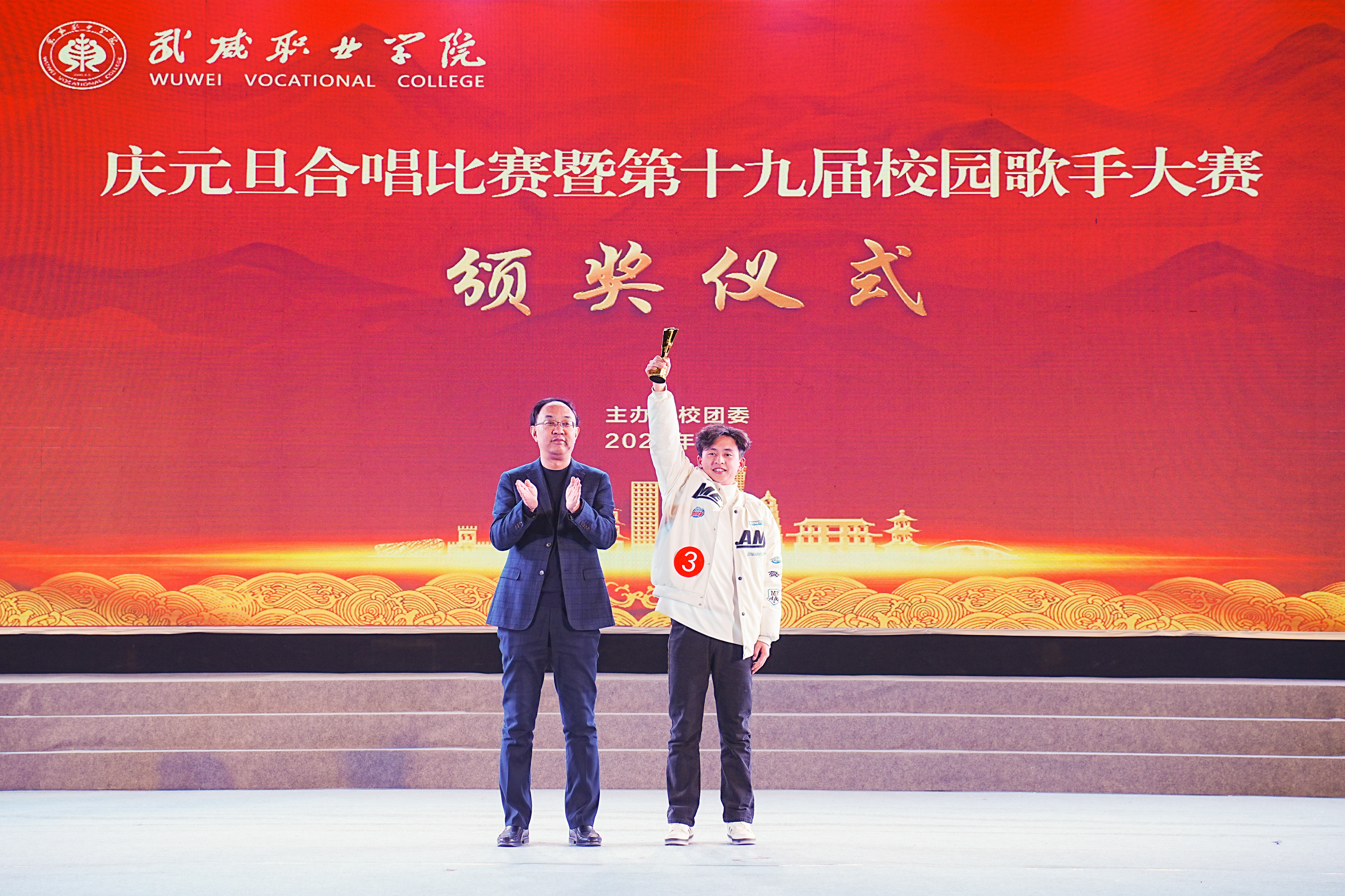 歌聲獻禮時代,青春唱響未來。12月26日晚,學?!皯c元旦”合唱比賽暨第十九屆校園歌手大賽在體育館成功舉辦。學校黨委書記王宏出席活動并為獲獎集體和個人頒獎,黨委委員、副校長王守云出席活動,各二級學院和相關部門負責人與2000余名師生現(xiàn)場觀看了比賽。