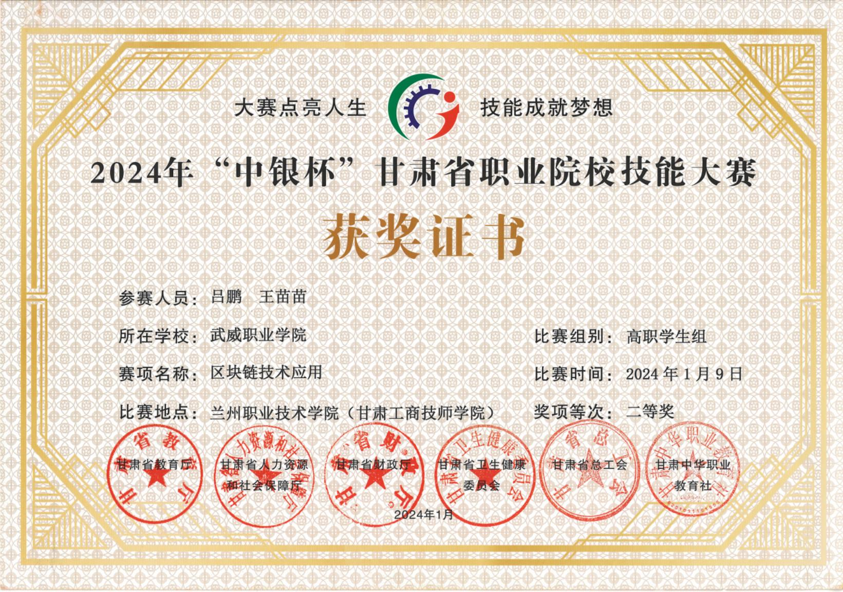 獲2024年“中銀杯”甘肅省職業(yè)院校技能大賽“二等獎”