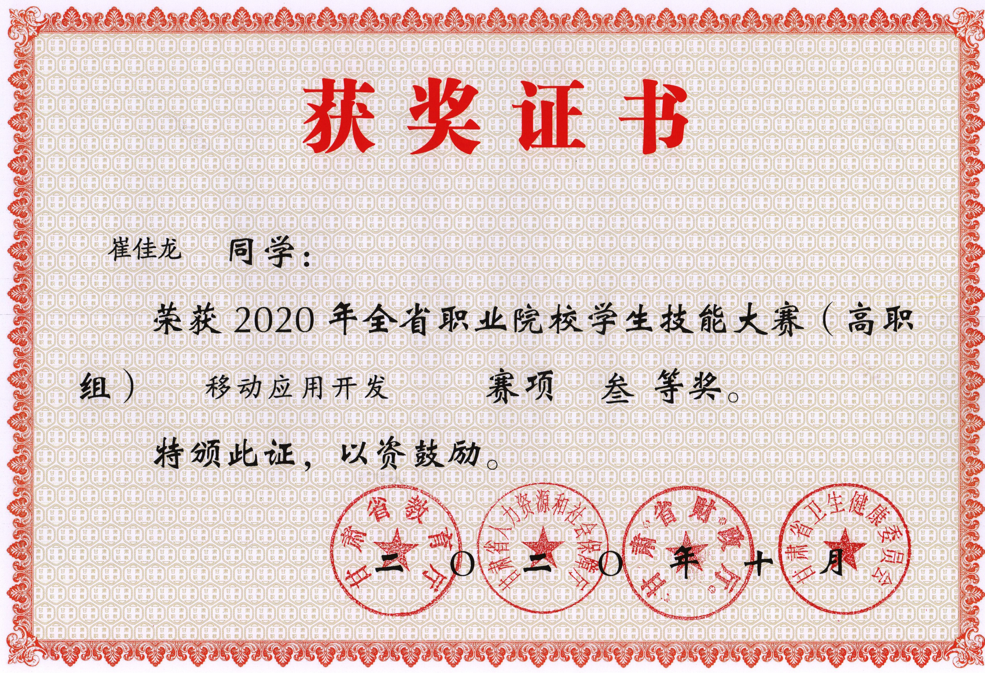 2020年全省職業(yè)院校學(xué)生技能大賽“三等獎(jiǎng)”