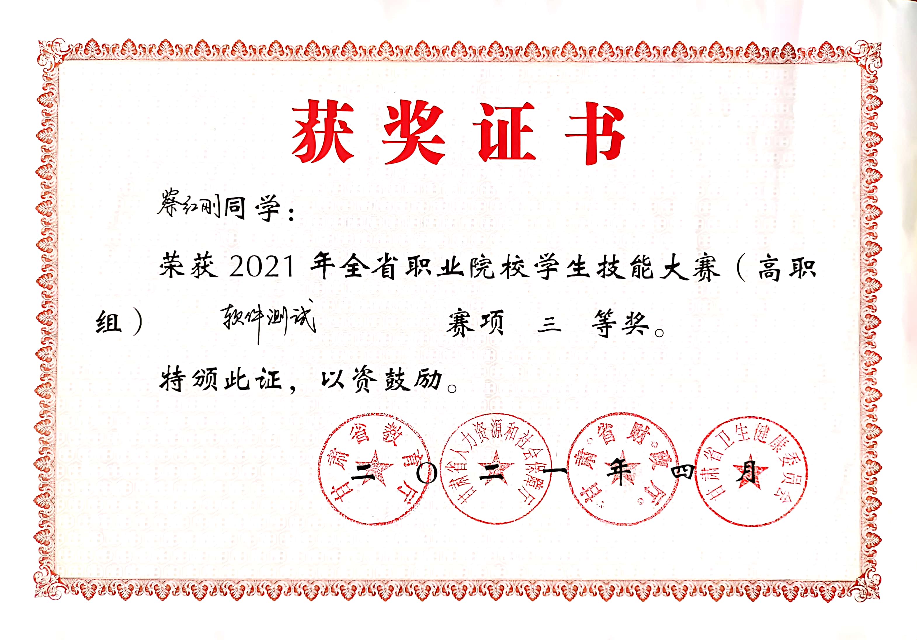 2021年全省職業(yè)院校學生技能大賽“三等獎”