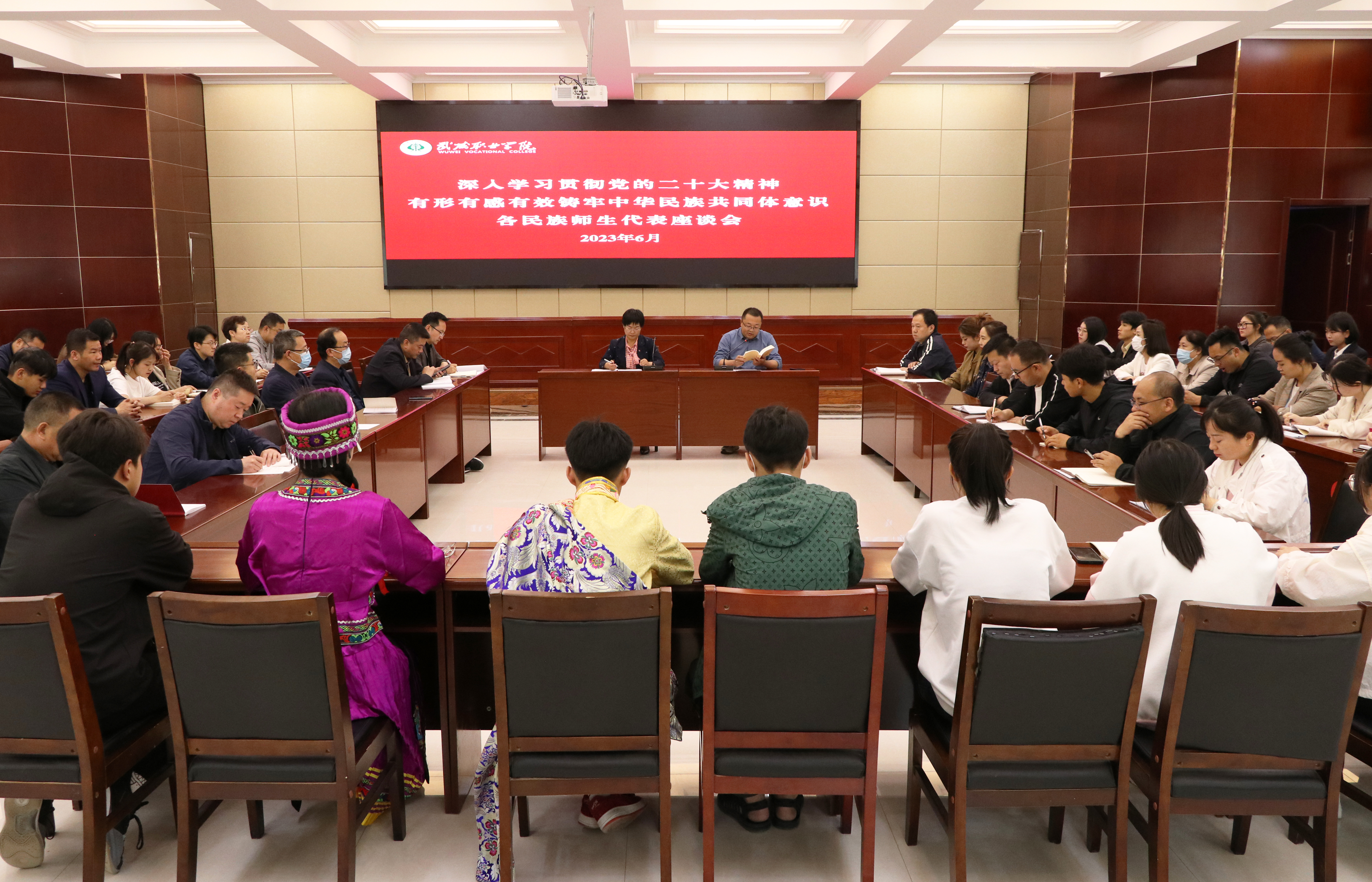 6月2日,學(xué)校召開以“學(xué)習(xí)貫徹黨的二十大精神? 有形有感有效鑄牢中華民族共同體意識”為主題的各民族師生代表座談會,學(xué)校漢族、藏族、回族、土族、滿族、苗族等13個民族師生代表60多人參加了座談會。學(xué)校黨委委員、副校長何毅出席會議并講話,座談會由宣傳統(tǒng)戰(zhàn)部負責人魏全民主持。