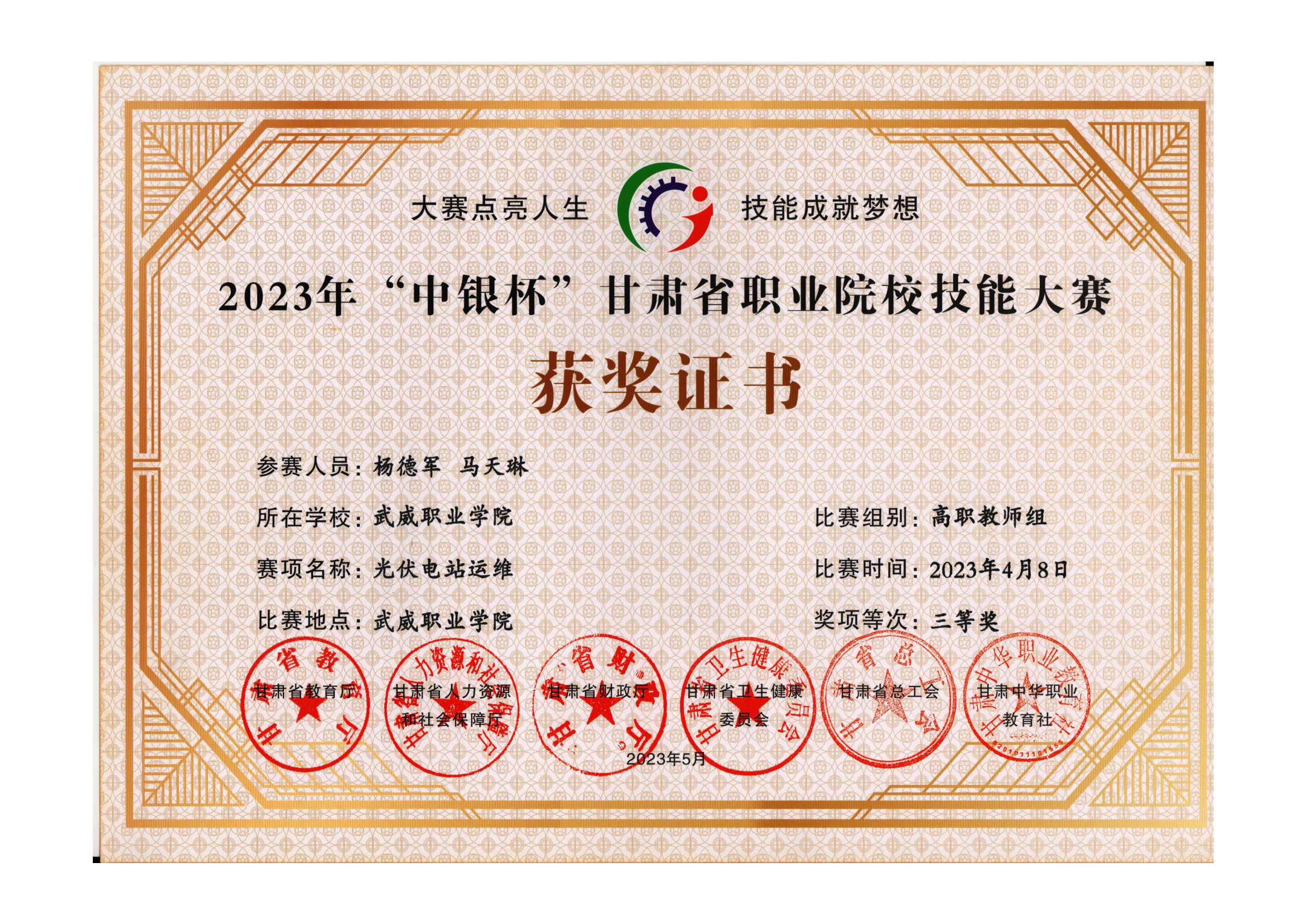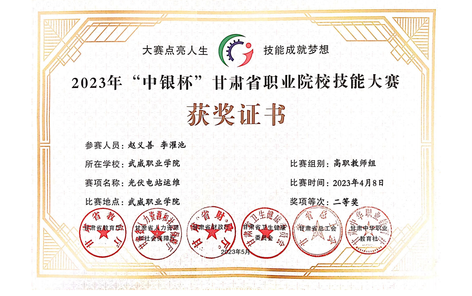 2023年甘肅省職業(yè)院校技能大賽光伏電站運維賽項(高職教師組)獲獎情況