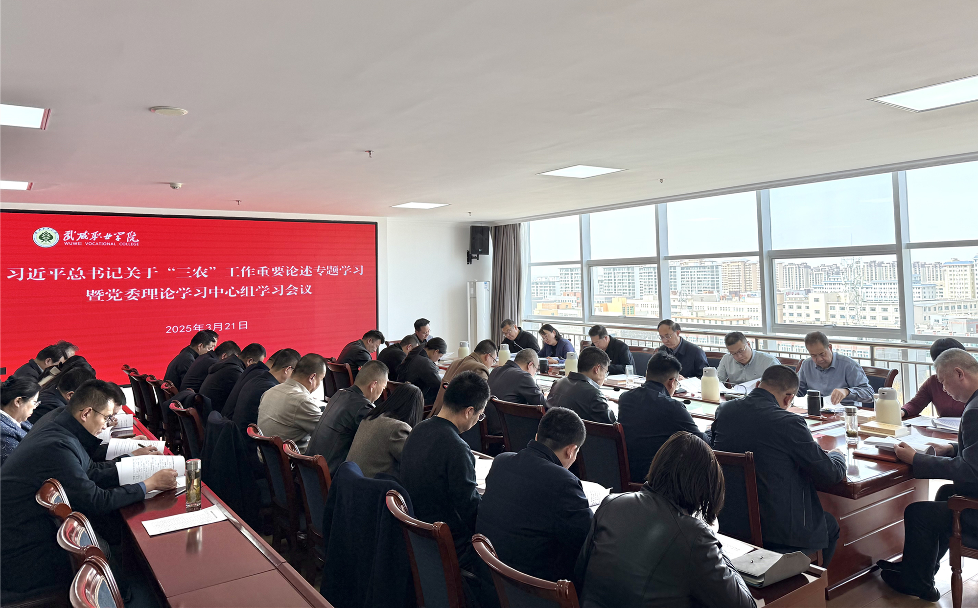 3月21日,學(xué)校召開黨委理論學(xué)習(xí)中心組學(xué)習(xí)會議,專題學(xué)習(xí)研討習(xí)近平總書記關(guān)于“三農(nóng)”工作重要論述。校黨委理論學(xué)習(xí)中心組成員參加,校長李海軍,各部門、二級學(xué)院主要負責(zé)人列席。黨委書記王宏主持會議并講話。