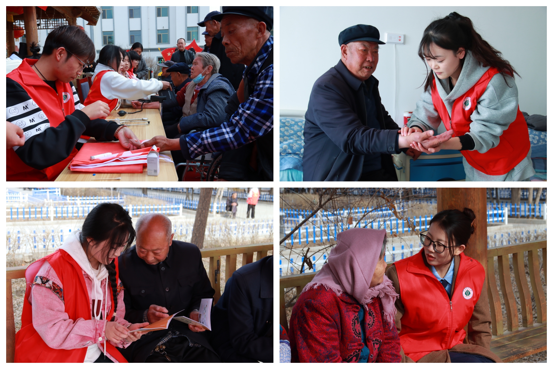 在健康慰問環(huán)節(jié),護(hù)理學(xué)院志愿者結(jié)合專業(yè)特色,分組為老人測(cè)量血壓、血糖,并耐心給老人講解養(yǎng)生知識(shí),告知在日常生活起居中的注意事項(xiàng),以專業(yè)技能守護(hù)老人健康。
