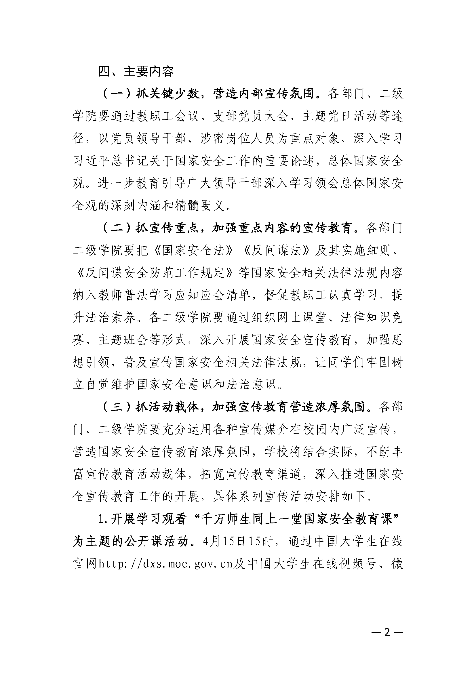 關(guān)于開展“4·15”全民國家安全教育日宣傳教育工作的通知