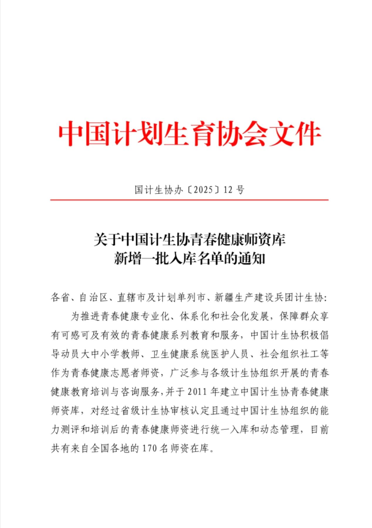 近日,中國計生協(xié)下發(fā)了《關于中國計生協(xié)青春健康師資庫新增一批入庫名單的通知》(國計生協(xié)辦〔2025〕12號),我會推薦的武威職業(yè)學院孔慶亮老師脫穎而出,成功入選中國計生協(xié)青春健康師資庫,成為甘肅省第二位國家級青春健康主持人。參加此次師資認證的有來自全國20個省(區(qū)、市)推薦的105名優(yōu)秀師資,在中國計生協(xié)設置的筆試、現(xiàn)場微課和面試問答等三個環(huán)節(jié)的層層選拔下,最終僅有33名師資成功入選。省計生協(xié)收到青春健康師資認證培訓后迅速響應,在高校群下發(fā)通知,以微課視頻和個人簡介等作為初審提交的相關材料,經(jīng)過認真審核,最終確定了2名師資參加此次培訓與考核,并盡全力幫助2名參培老師在考核中取得優(yōu)異成績。一是將精心收集整理的青春健康知識題庫內(nèi)容在第一時間發(fā)給了兩位參培老師。二是組織召開了線上師資認證考前輔導視頻會。甘肅省計生協(xié)副會長兼秘書長金文?。ㄔ鴵沃袊嬌鷧f(xié)師資認證考官)同志親自進行考前輔導,將擔任主考官時學員存在的問題整理成筆記進行了分享;并從考核要點出發(fā),深入剖析每個關鍵知識點,分享實用的答題技巧,幫助參培老師掌握應對不同題型的方法。針對兩位老師準備的微課展示規(guī)范,從教學設計、教學方法運用等方面,參會的人員也進行了充分的交流,為參培老師提供了全方位的幫助和建議。近年來,甘肅省計生協(xié)狠抓青春健康教育工作,各項工作都有所建樹。一是與教育部門聯(lián)合,全力推進青春健康高校工作,2024年青春健康高校項目首次拓展至9所,全面完成了《關于印發(fā)甘肅省生殖健康促進行動實施方案(2023-2025年)的通知》中“到2025年,全省開展青春健康同伴教育高校達到8-10所的任務目標”,使更多的青少年感受到了參與式培訓的魅力,提升了青少年健康管理和人生技能的發(fā)展能力。二是除了爭取到國家溝通之道項目點以外,還建立了全省首個省級溝通之道項目點,使更多的家長學會了如何正確的和孩子進行性與生殖健康知識這些敏感話題的溝通。建成了首個規(guī)范運行的省級青春健康俱樂部,俱樂部師資們采取“請進來、走出去的”方式,為青少年打造了集科普、交流、咨詢于一體的知識“補給站”,有力推動全省青春健康工作。三是邀請國家級主持人以及參加了國家培訓的師資走進臨夏州永靖縣、隴南市宕昌縣和平?jīng)鍪徐o寧縣,開展“迎接青春期”培訓,讓學校認識到參與式培訓的優(yōu)勢,助力青少年科學認識青春期,為后續(xù)項目拓展筑牢根基。三、厚積薄發(fā),持續(xù)打造青春健康品牌甘肅省青春健康工作在持續(xù)努力和堅持下,得到了更多相關部門和社會的認可,去年12月1日“世界艾滋病日”,省計生協(xié)聯(lián)合共青團、婦聯(lián)、疾控局等成功舉辦了微海報、微視頻及征文的艾滋病日紀念活動,并將獲獎結果在每日甘肅、協(xié)會網(wǎng)站、公眾號等鋪天蓋地地進行了宣傳,得到了社會各界的廣泛關注。孔慶亮老師這份榮譽不僅是對個人努力結果,更是甘肅省青春健康事業(yè)蓬勃發(fā)展的有力見證!甘肅省計生協(xié)也將以此為契機,賡續(xù)前進,加大青春健康師資培訓、開展青春健康進校園擴面行動,持續(xù)推進高校項目,多點建立省級青春健康項目點和俱樂部,推動全省青春健康工作向?qū)I(yè)化、體系化、普及化加速邁進,讓青春健康的陽光照亮每一個角落。也希望更多的志愿者、仁人志士,加入到青春健康工作中,在青春健康領域發(fā)光發(fā)熱,為青少年健康成長筑牢堅固屏障。