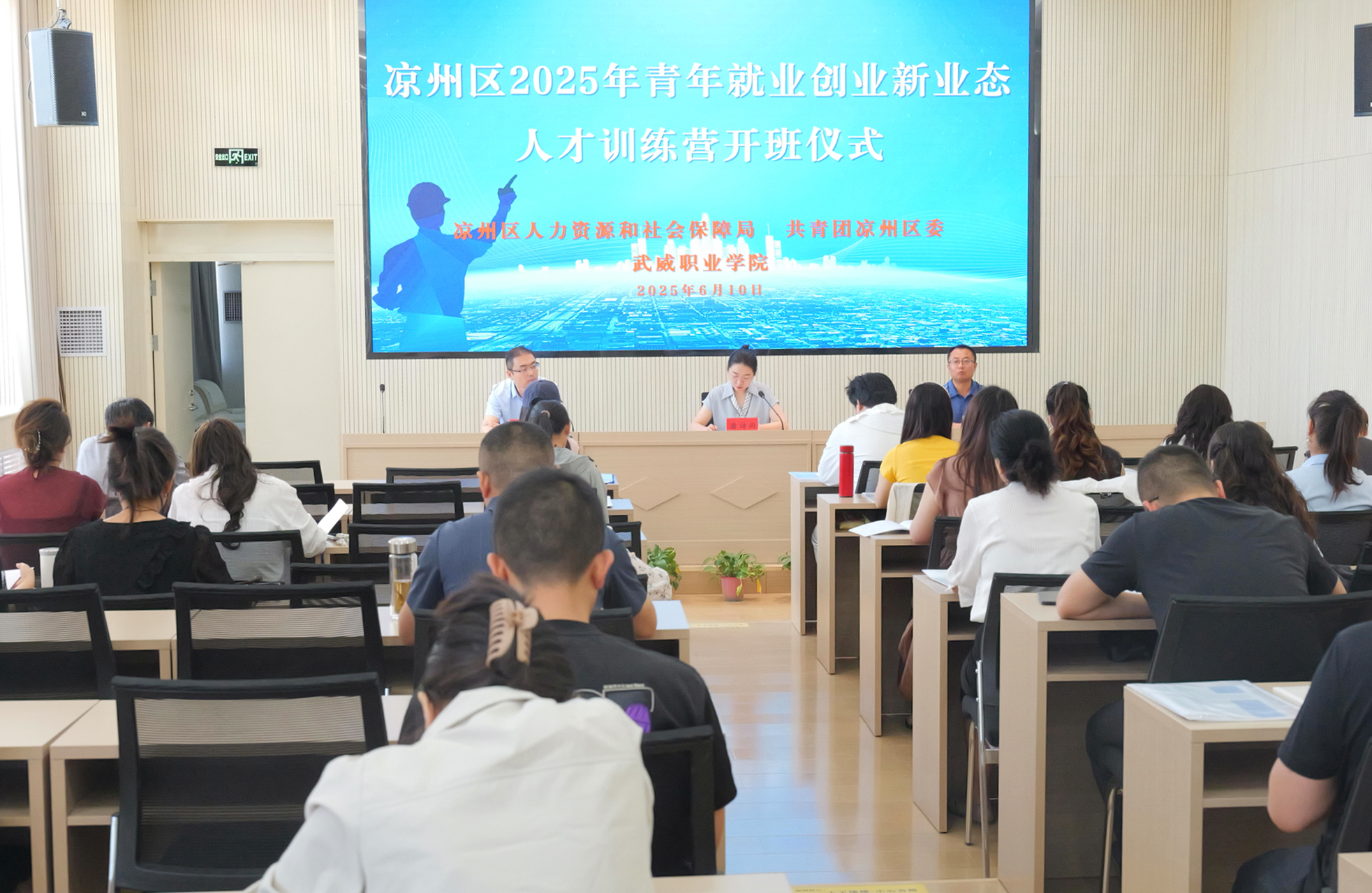 6月10日,由涼州區(qū)人力資源和社會(huì)保障局、共青團(tuán)涼州區(qū)委主辦,學(xué)校承辦的涼州區(qū)2025年青年就業(yè)創(chuàng)業(yè)新業(yè)態(tài)人才訓(xùn)練營在學(xué)校圖書館報(bào)告廳開班,農(nóng)副產(chǎn)品、手工藝品、短視頻、直播帶貨、網(wǎng)絡(luò)營銷、網(wǎng)約配送等新業(yè)態(tài)方面的從業(yè)人員和有志于推廣“一鎮(zhèn)一業(yè)、一村一品”的優(yōu)秀創(chuàng)業(yè)就業(yè)人員共50余人參加了培訓(xùn)。