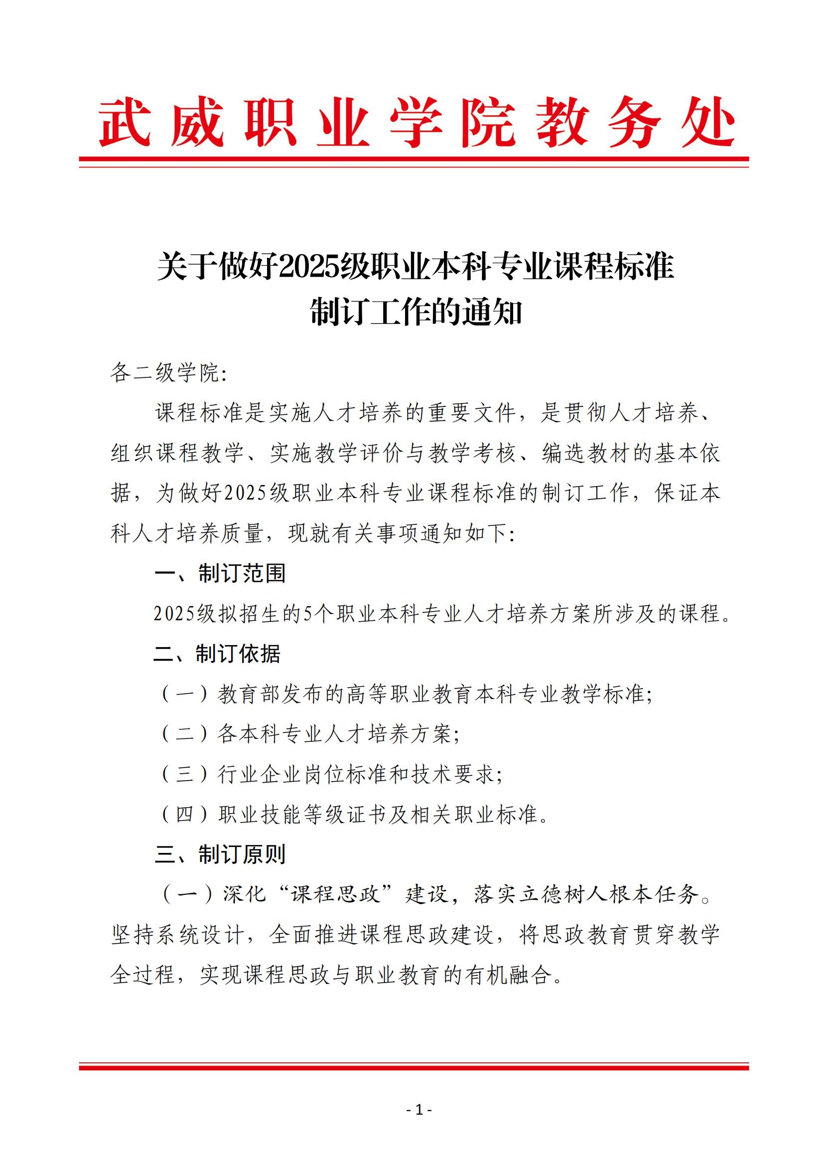 關(guān)于做好2025級職業(yè)本科專業(yè)課程標(biāo)準(zhǔn)制訂工作的通知
