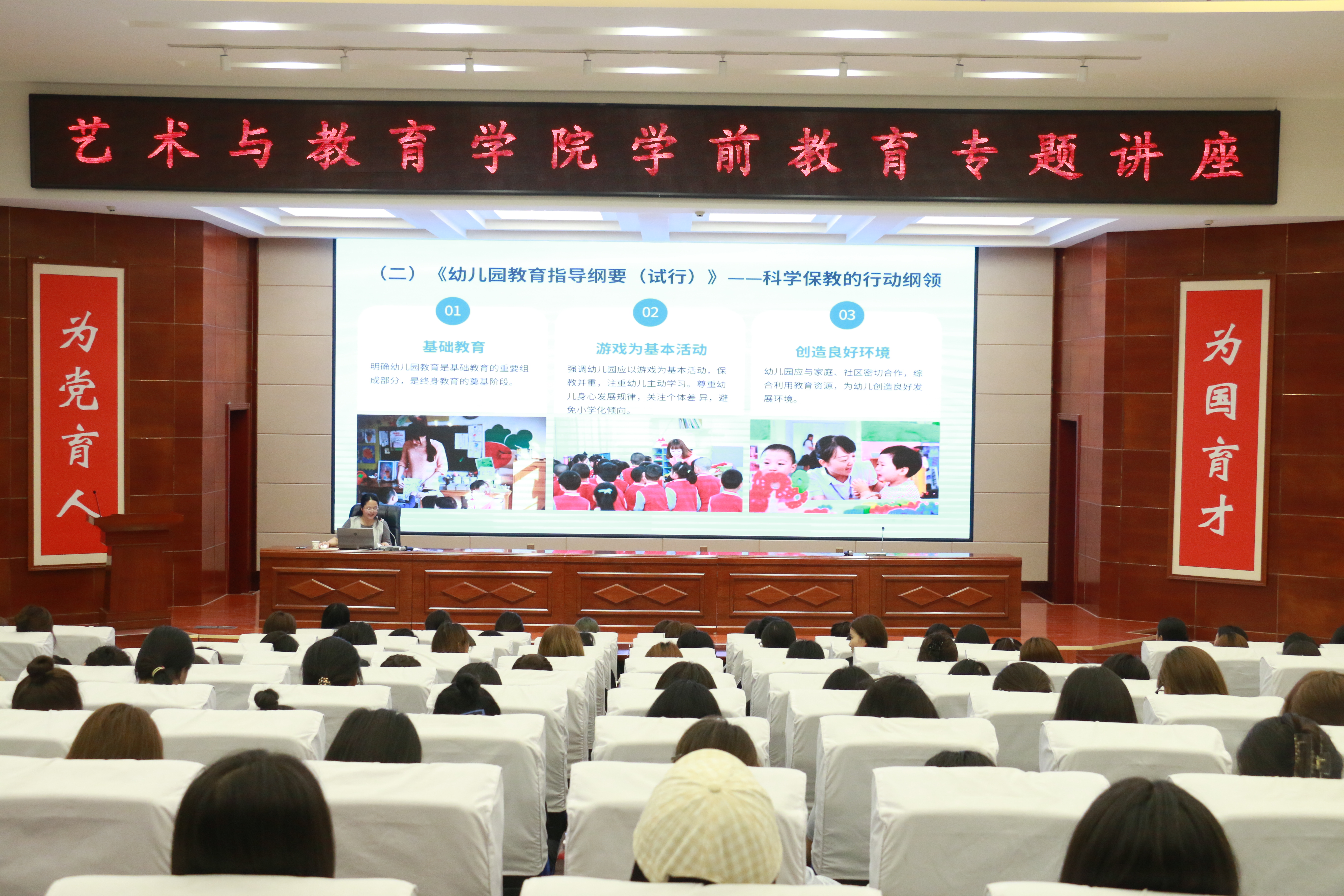 2025年6月20日至27日,學(xué)院特邀武威市實(shí)驗(yàn)幼兒園黨支部書記楊生麗和武威市第二實(shí)驗(yàn)幼兒園副園長(zhǎng)寧曉琴,在學(xué)校菁英廳作學(xué)前教育專題講座。學(xué)院師生共計(jì)700余人聆聽講座。講座由學(xué)院副院長(zhǎng)蘆小鵬主持。