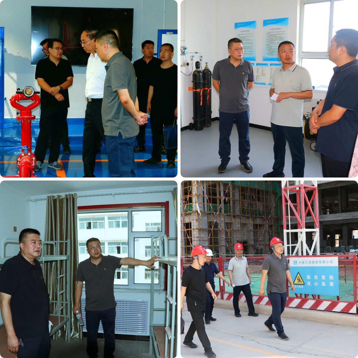 檢查組一行先后對消防控制室、各教學(xué)樓實驗實訓(xùn)室、心理健康中心、體育館、圖書館、學(xué)生宿舍、學(xué)生食堂、綜合實訓(xùn)樓施工現(xiàn)場等重點區(qū)域進行了安全檢查,現(xiàn)場聽取相關(guān)負(fù)責(zé)人安全排查情況匯報,詳細(xì)了解各樓宇消防安全設(shè)備配置和運行、各實驗室安全設(shè)施配置及?;反鎯芾碇贫葓?zhí)行、食品安全管理制度落實、學(xué)生宿舍安全隱患排查、施工現(xiàn)場安全文明施工保障等具體情況,并對各重點區(qū)域安全管理、設(shè)施設(shè)備等方面存在的短板和不足與相關(guān)負(fù)責(zé)人進行現(xiàn)場溝通,要求有針對性、有重點地進行限時整改。