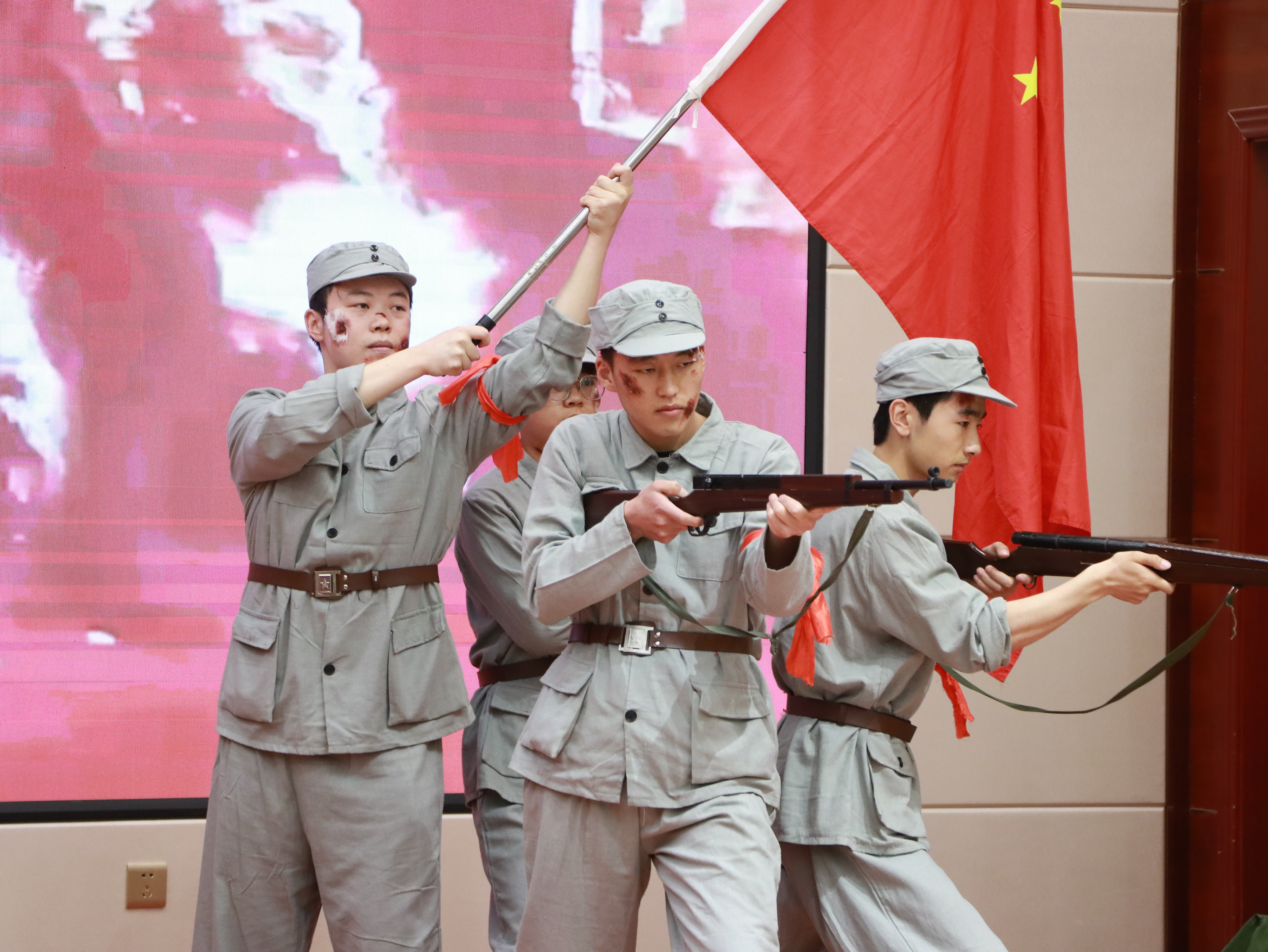 比賽現(xiàn)場(chǎng),各參賽隊(duì)伍以“誦、演、歌、頌”的復(fù)合表達(dá),帶領(lǐng)觀眾穿越歷史烽煙,重現(xiàn)那段氣壯山河的抗戰(zhàn)歲月。他們或慷慨激昂地講述革命先輩寧死不屈的壯舉,或手持泛黃家書深情誦讀,絕筆信中的母愛(ài)與家國(guó)大義在顫抖的聲線中重現(xiàn);或化身硝煙中的戰(zhàn)士,用染血繃帶與折斷鋼槍演繹出“十萬(wàn)青年十萬(wàn)軍”的悲壯群像。那些被歲月蝕刻的墨跡,此刻正在當(dāng)代青年的瞳孔里重新燃燒。一句句飽含深情的誦讀,一幕幕震撼人心的演繹,都傳遞著同學(xué)們對(duì)抗戰(zhàn)英烈的深切緬懷與崇高敬意?,F(xiàn)場(chǎng)掌聲如潮水般此起彼伏,經(jīng)久不息,激蕩著每一位觀眾的愛(ài)國(guó)情懷。