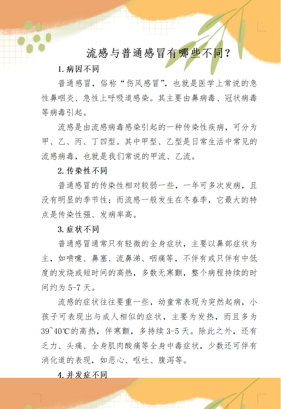 流感健康提示