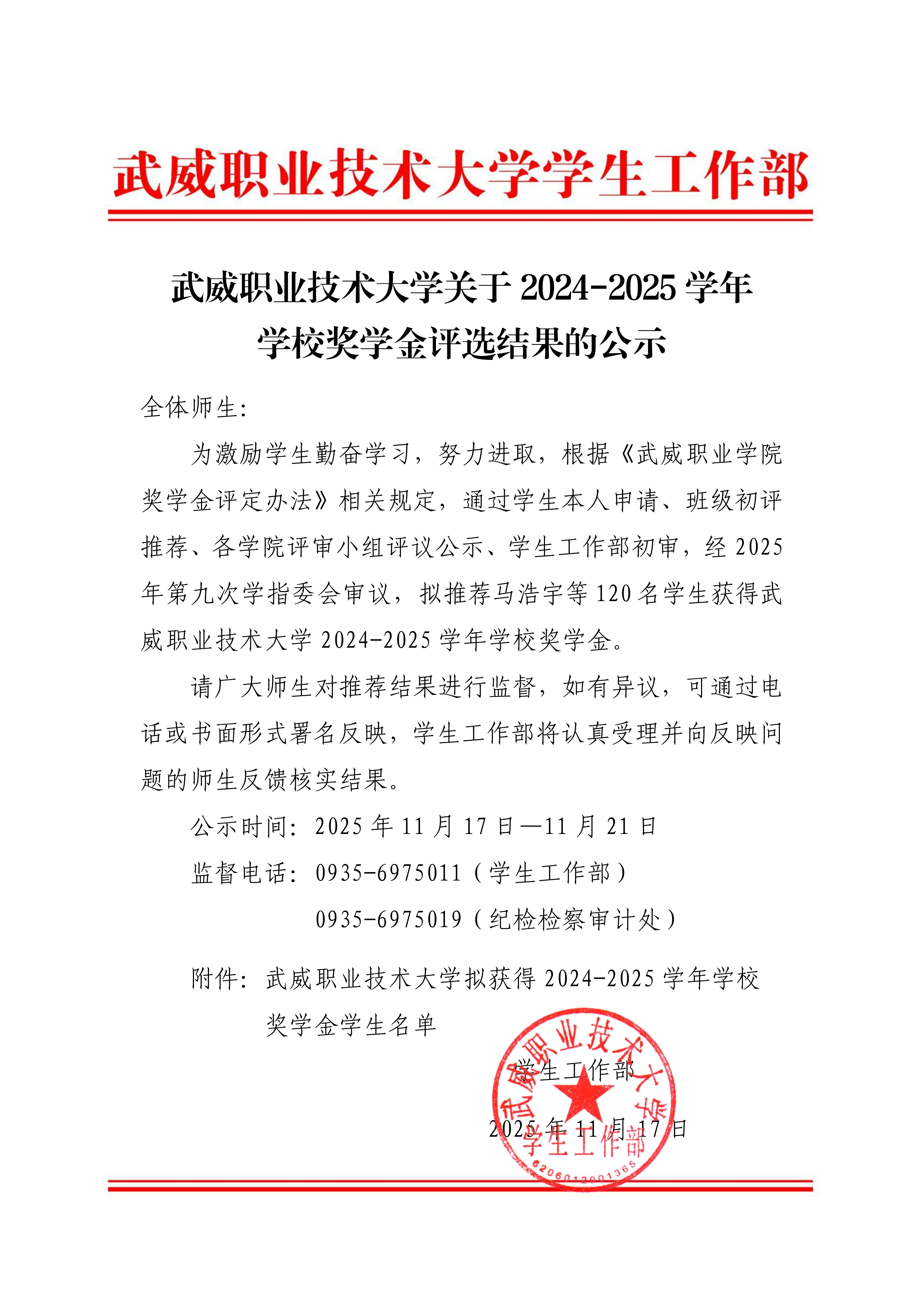 武威職業(yè)技術(shù)大學(xué)關(guān)于2025年學(xué)校助學(xué)金評(píng)選結(jié)果…