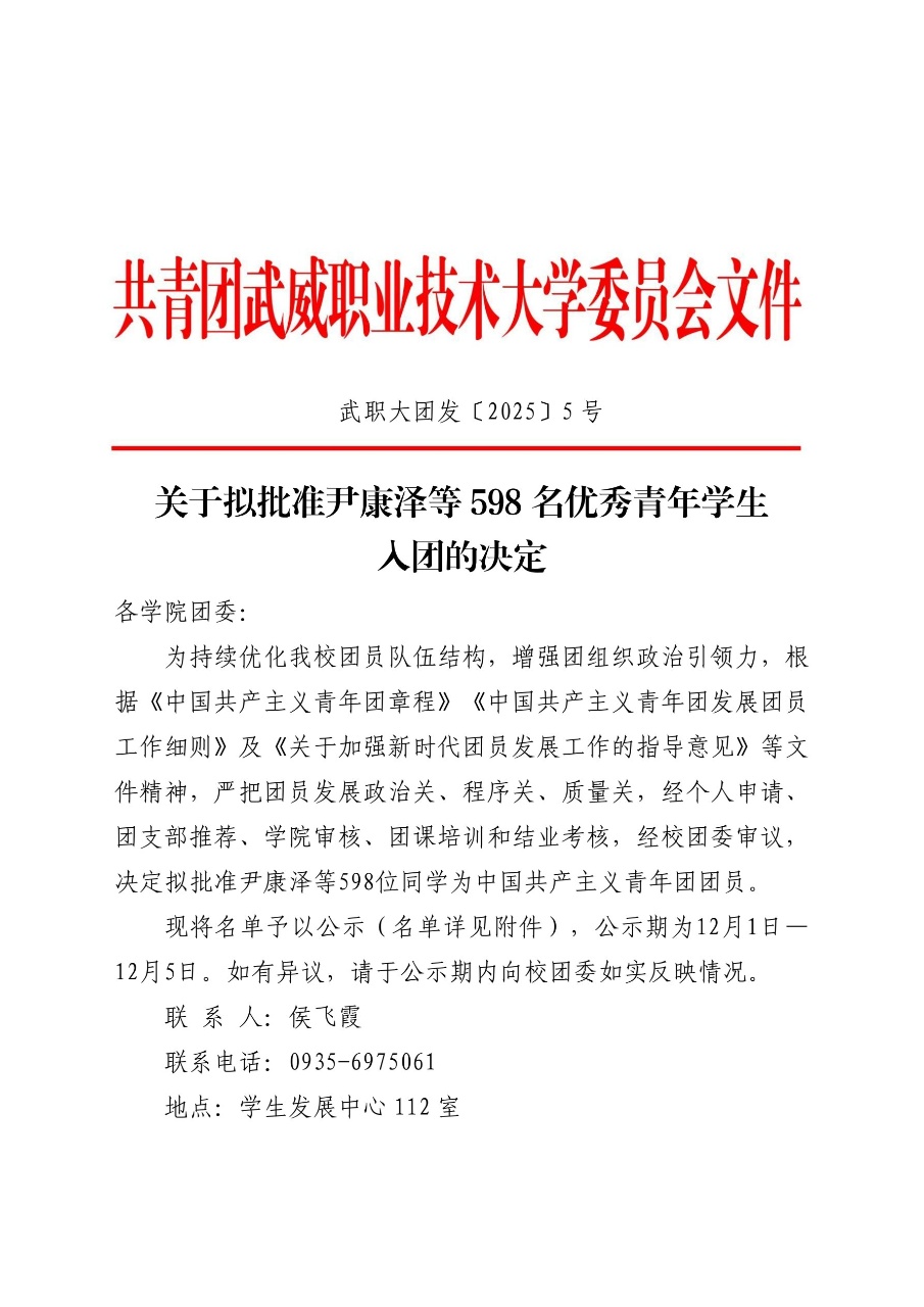 關(guān)于擬批準(zhǔn)尹康澤等598名優(yōu)秀青年學(xué)生入團(tuán)的決定