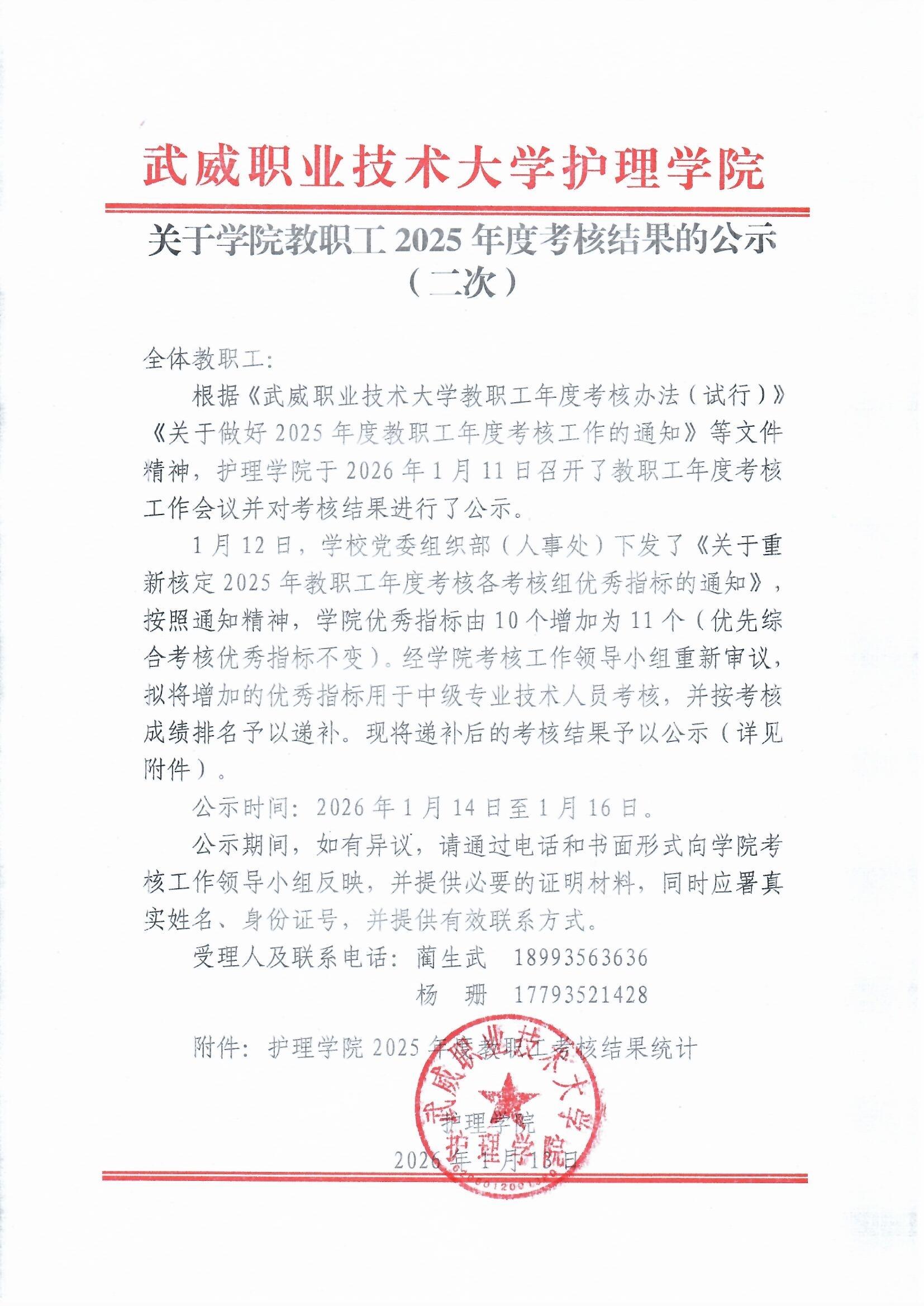 關(guān)于學(xué)院教職工2025年度考核結(jié)果的公示(二次)