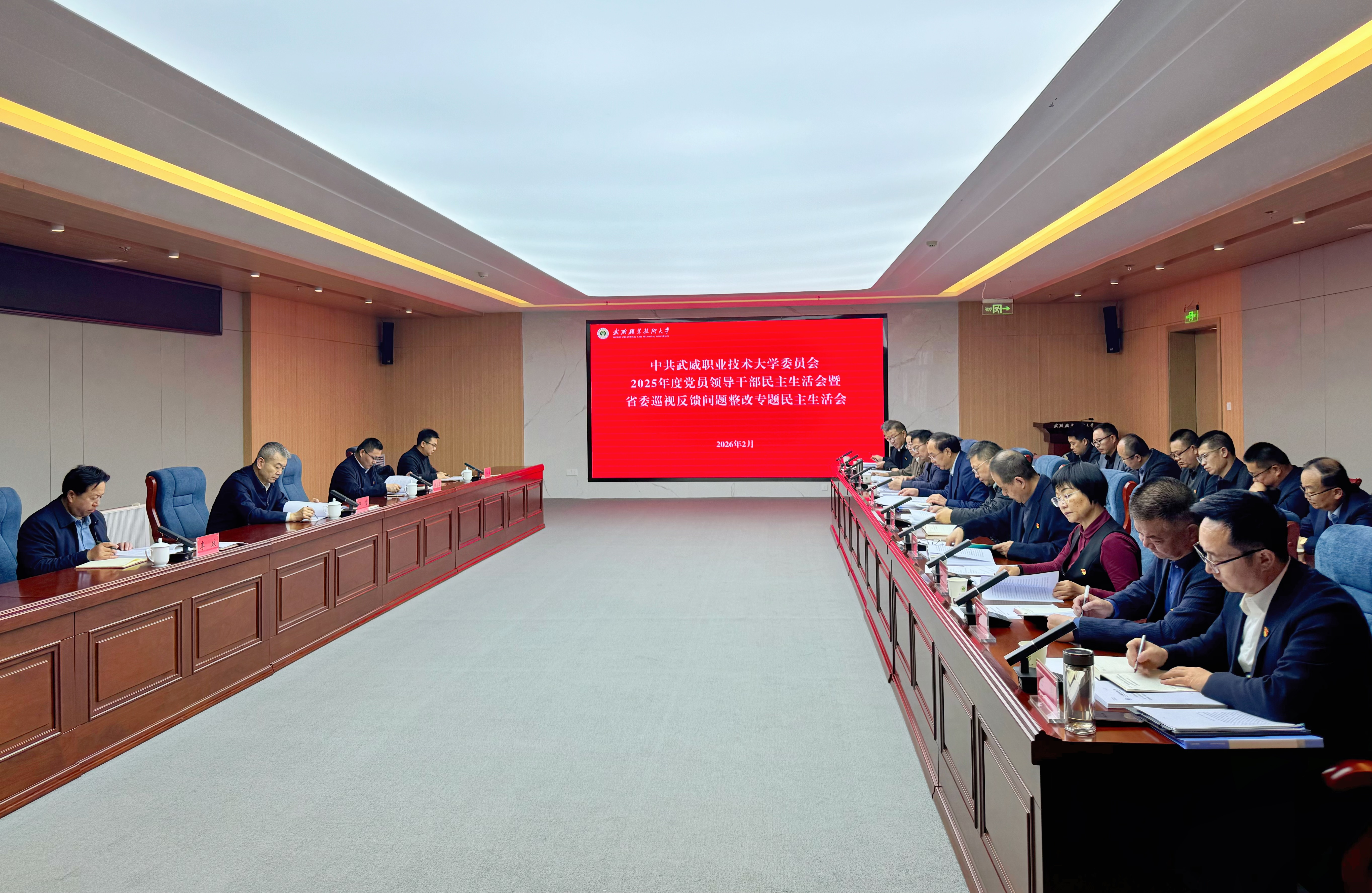 2月25日,中共武威職業(yè)技術(shù)大學(xué)委員會2025年度黨員領(lǐng)導(dǎo)干部民主生活會暨省委巡視反饋問題整改專題民主生活會在經(jīng)緯樓學(xué)術(shù)報告廳召開。主題是深入學(xué)習(xí)貫徹習(xí)近平新時代中國特色社會主義思想,全面貫徹落實黨的二十屆四中全會精神,以打攻堅戰(zhàn)、持久戰(zhàn)的決心和恒心,鍥而不舍落實中央八項規(guī)定精神,推進作風(fēng)建設(shè)常態(tài)化長效化,以優(yōu)良作風(fēng)凝心聚力、真抓實干,奮力開創(chuàng)中國式現(xiàn)代化建設(shè)新局面。