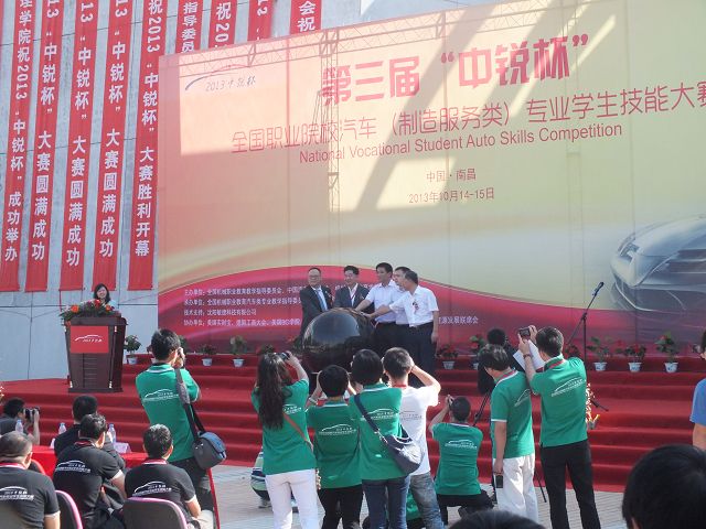 2013年10月14—15日,第三屆“中銳杯”全國(guó)職業(yè)院校汽車(chē)(制造服務(wù)類)專業(yè)學(xué)生技能大賽”總決賽在江西南昌舉行。全國(guó)近百所院校三百多名學(xué)生參加了此次大賽。本次大賽由全國(guó)機(jī)械職業(yè)教育教學(xué)指導(dǎo)委員會(huì)、中國(guó)汽車(chē)流通協(xié)會(huì)、機(jī)械工業(yè)教育發(fā)展中心共同主辦,全國(guó)機(jī)械職業(yè)教育汽車(chē)類專業(yè)教學(xué)指導(dǎo)委員會(huì)、江西現(xiàn)代職業(yè)技術(shù)學(xué)院承辦。本次大賽裁判和評(píng)委均由汽車(chē)行業(yè)的各大代表以及資深企業(yè)營(yíng)銷專家擔(dān)任,因此評(píng)選也將更加注重實(shí)踐性和專業(yè)性。