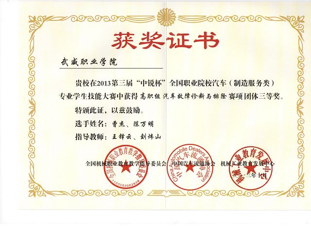 我院學(xué)生在第三屆“中銳杯”全國(guó)職業(yè)院校汽車(chē)專業(yè)學(xué)生技能大賽中獲獎(jiǎng)