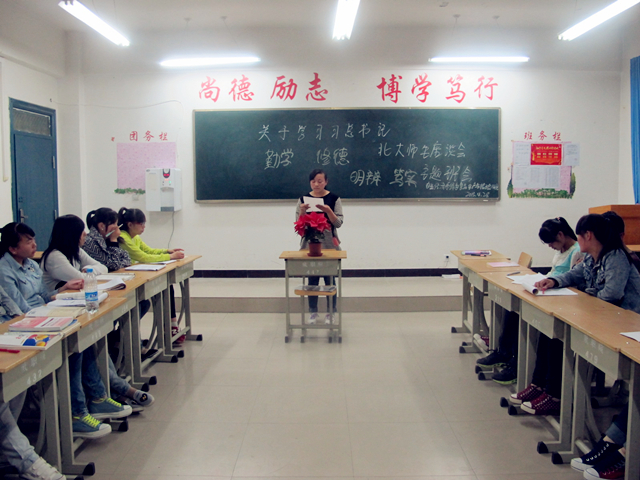 根據(jù)院團(tuán)委開展中國夢學(xué)習(xí)宣傳教育及培育和踐行社會主義核心價值觀活動有關(guān)安排,在習(xí)近平總書記與北京大學(xué)師生座談會上的講話發(fā)表一周年之際,為進(jìn)一步引領(lǐng)帶動廣大青年學(xué)生認(rèn)知、踐行總書記提出的“勤學(xué)、修德、明辨、篤實(shí)”的重要要求,我系集中開展了“如何練好習(xí)大大傳授的‘八字真經(jīng)’”主題團(tuán)日活動。