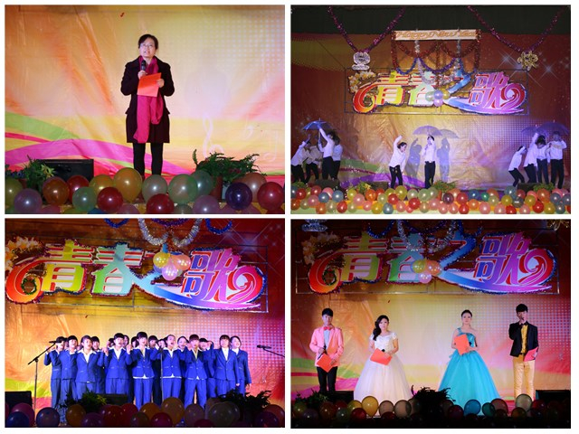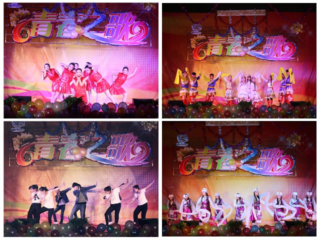 本次晚會以“青春之歌,歡送畢業(yè)生”為主題,共表演了17個精彩節(jié)目。晚上7點整,開場舞《倍兒爽》、《小蘋果》為整臺晚會拉開了帷幕。在晚會上,《格桑拉》、《吉祥謠》及《青春踢踏》等少數(shù)民族舞蹈,體現(xiàn)了五十六個民族大團(tuán)結(jié),互相共融的感情;《感恩的心》表達(dá)了學(xué)生們對老師一年來孜孜不倦、淳淳教誨的感恩之情;《天下父母心》表達(dá)了對父母的養(yǎng)育之恩的感謝;舞蹈《驚鴻舞》和《The boys》等給觀眾帶來了別樣的風(fēng)情,展現(xiàn)出青年學(xué)子活力青春;大型舞蹈《致那些年逝去的青春》和《夢回敦煌》帶給觀眾視覺盛宴;舞蹈《串燒》結(jié)合了幾首近幾年流行的膾炙人口的歌曲,將不同舞蹈串燒一起。青春現(xiàn)代舞《Expect》將整個晚會推向高潮。