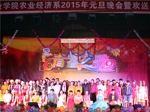 20141231晚,由農(nóng)業(yè)經(jīng)濟(jì)系主辦的2015年元旦晚會暨歡送畢業(yè)生晚會在學(xué)院大禮堂隆重舉行。農(nóng)業(yè)經(jīng)濟(jì)系全體教師及500多名學(xué)生觀看了晚會。農(nóng)經(jīng)系主任晏素珍在晚會上致新年賀詞,同時回顧了農(nóng)經(jīng)系2014年取得的成績,并對農(nóng)經(jīng)系2015年提出了期望。