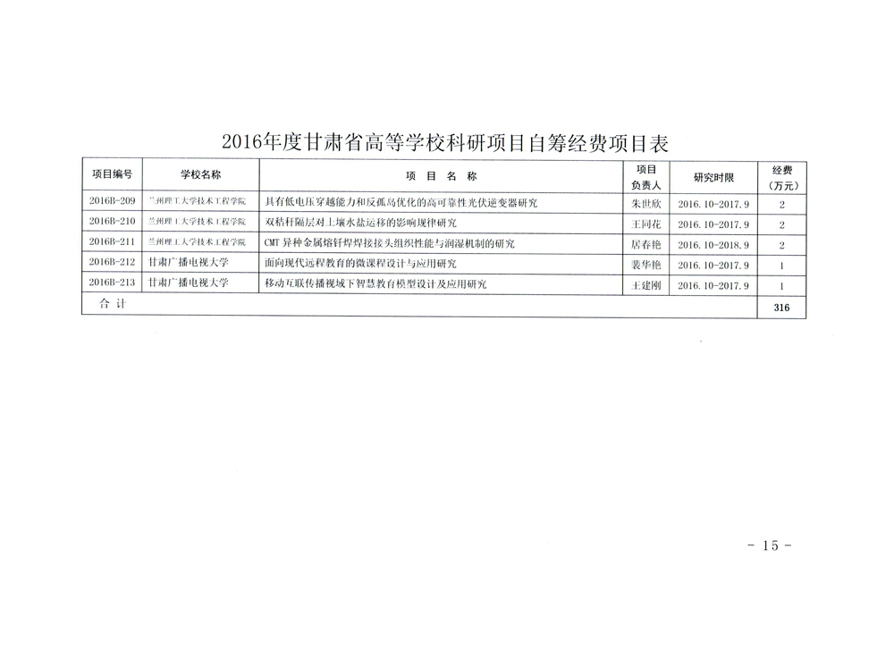 轉(zhuǎn)發(fā)甘肅省財政廳 教育廳文件 關于下達2016年度甘肅省高等學??蒲许椖孔曰I經(jīng)費項目的通知