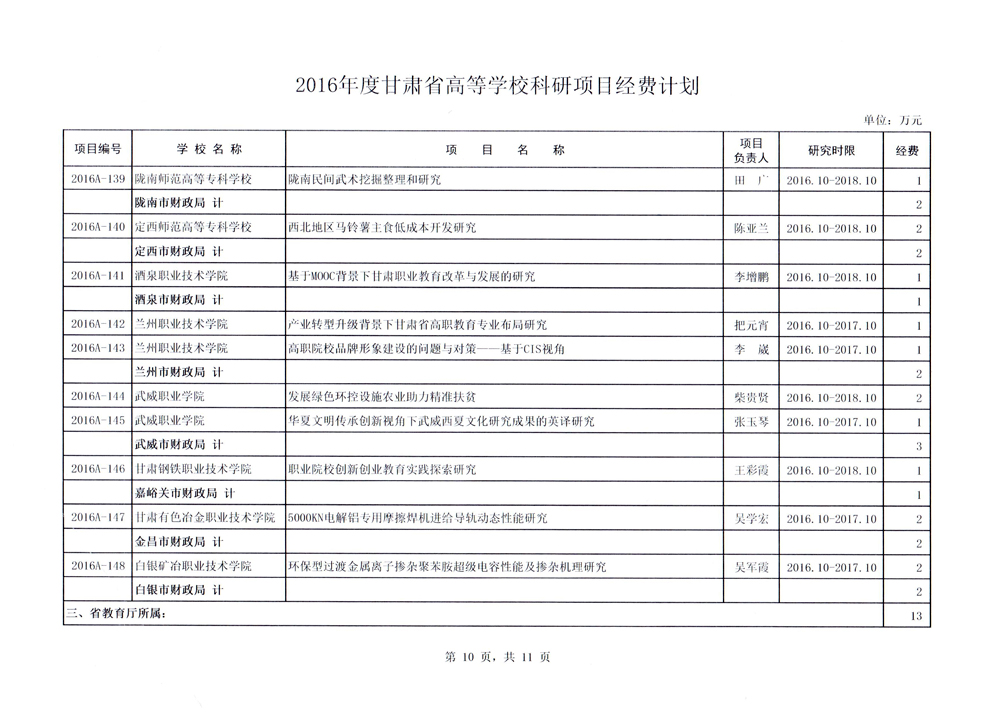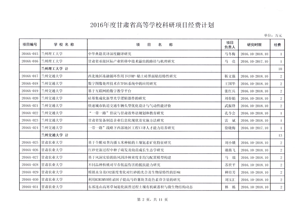 轉(zhuǎn)發(fā)甘肅省財(cái)政廳 教育廳文件 關(guān)于下達(dá)2016年度甘肅省高等學(xué)??蒲许?xiàng)目自…