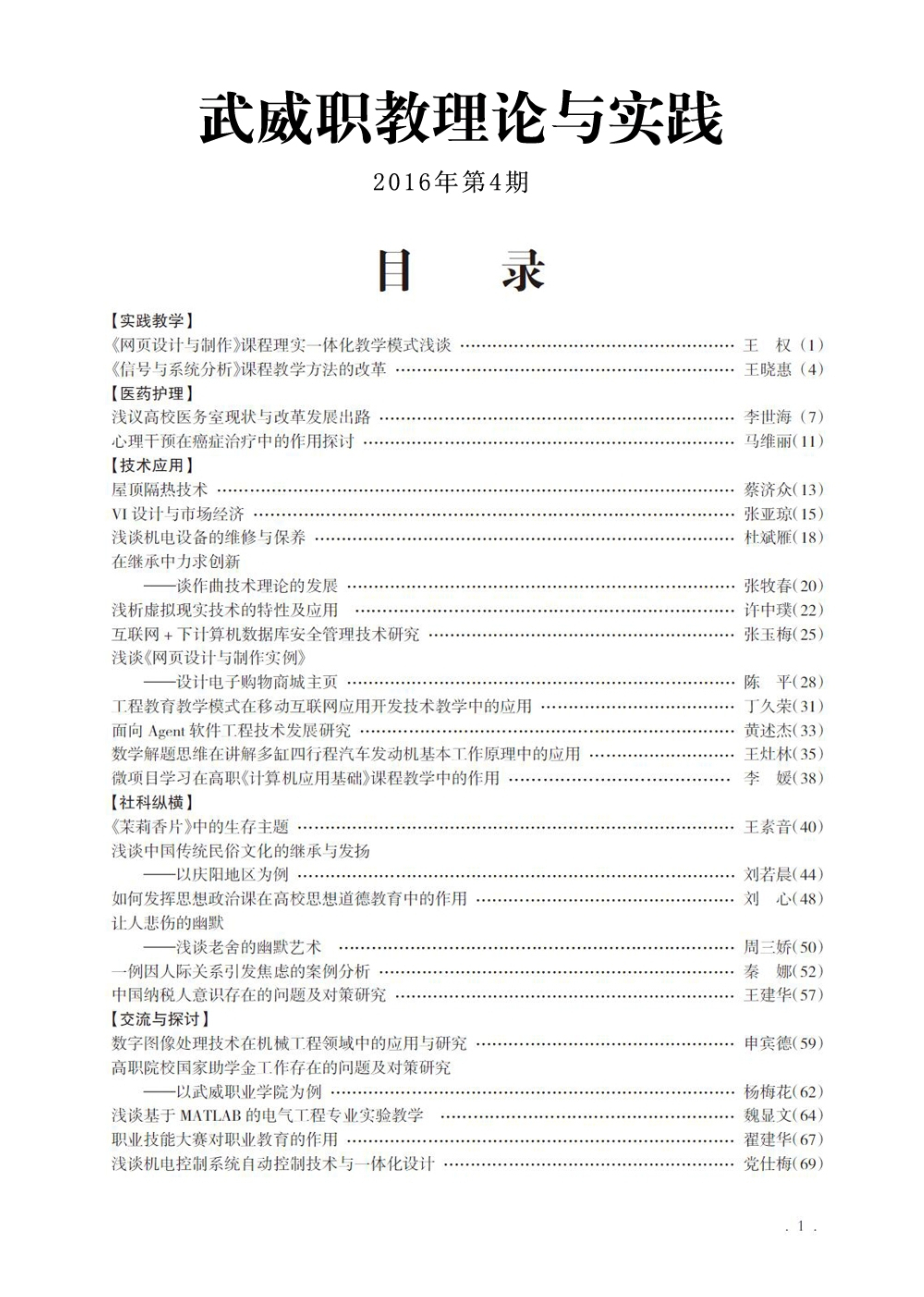 2016年第4期《武威職教理論與實踐》