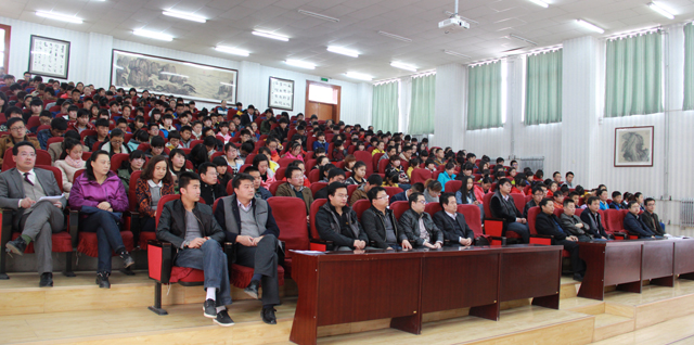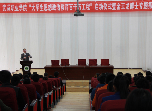 啟動儀式后,學(xué)院心理學(xué)博士、副教授金玉龍為師生就 “就業(yè)與心理健康”做專題報告。(學(xué)生處 秦娜供稿)