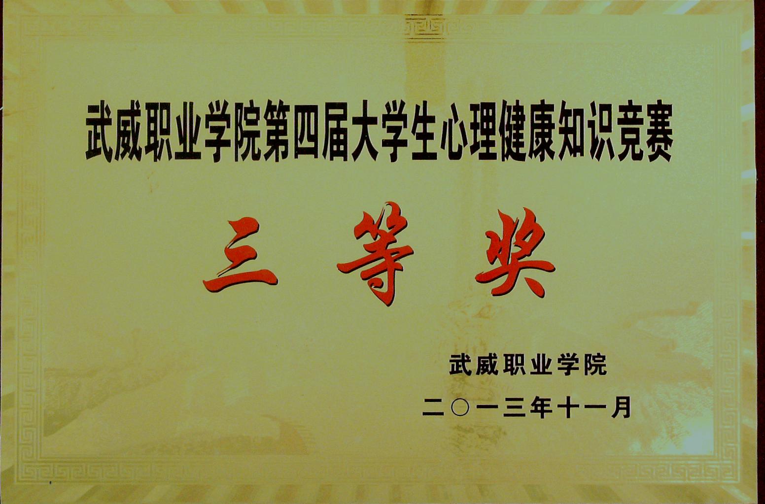 第四屆大學(xué)生心理健康知識競賽三等獎