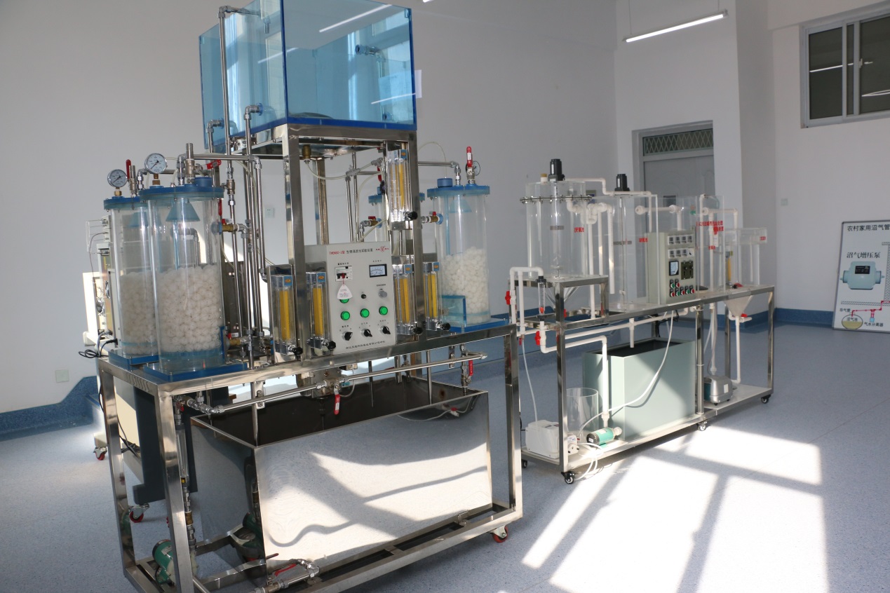 實(shí)訓(xùn)功能:本實(shí)訓(xùn)室擁有生物滴濾池實(shí)驗(yàn)裝置、完全混合式活性污泥法實(shí)驗(yàn)裝置、沼氣發(fā)酵罐(四樓樓頂)、A20法城市污水處理模擬設(shè)備共9套。主要服務(wù)課程為《農(nóng)業(yè)微生物》、《沼氣生產(chǎn)利用技術(shù)》、《生物質(zhì)能利用技術(shù)》、《農(nóng)業(yè)環(huán)境監(jiān)測(cè)技術(shù)》。