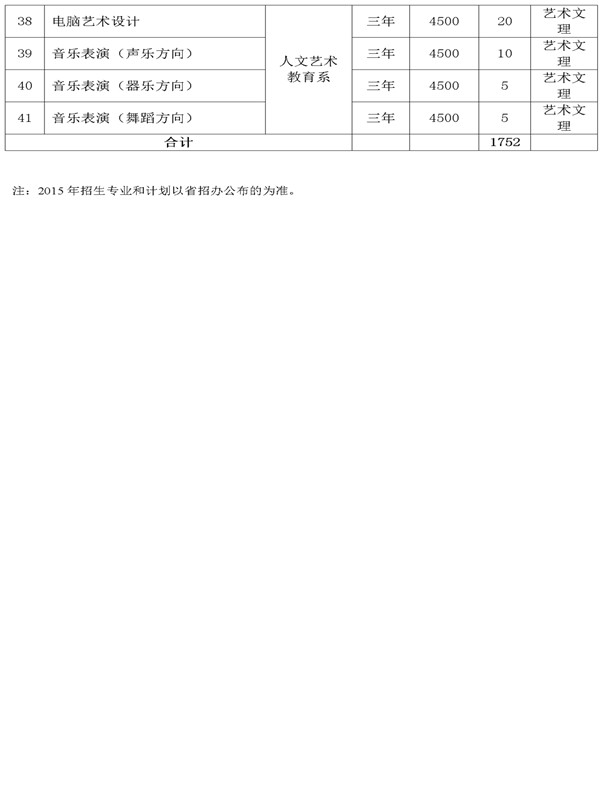 武威職業(yè)學(xué)院2015年招生計(jì)劃表