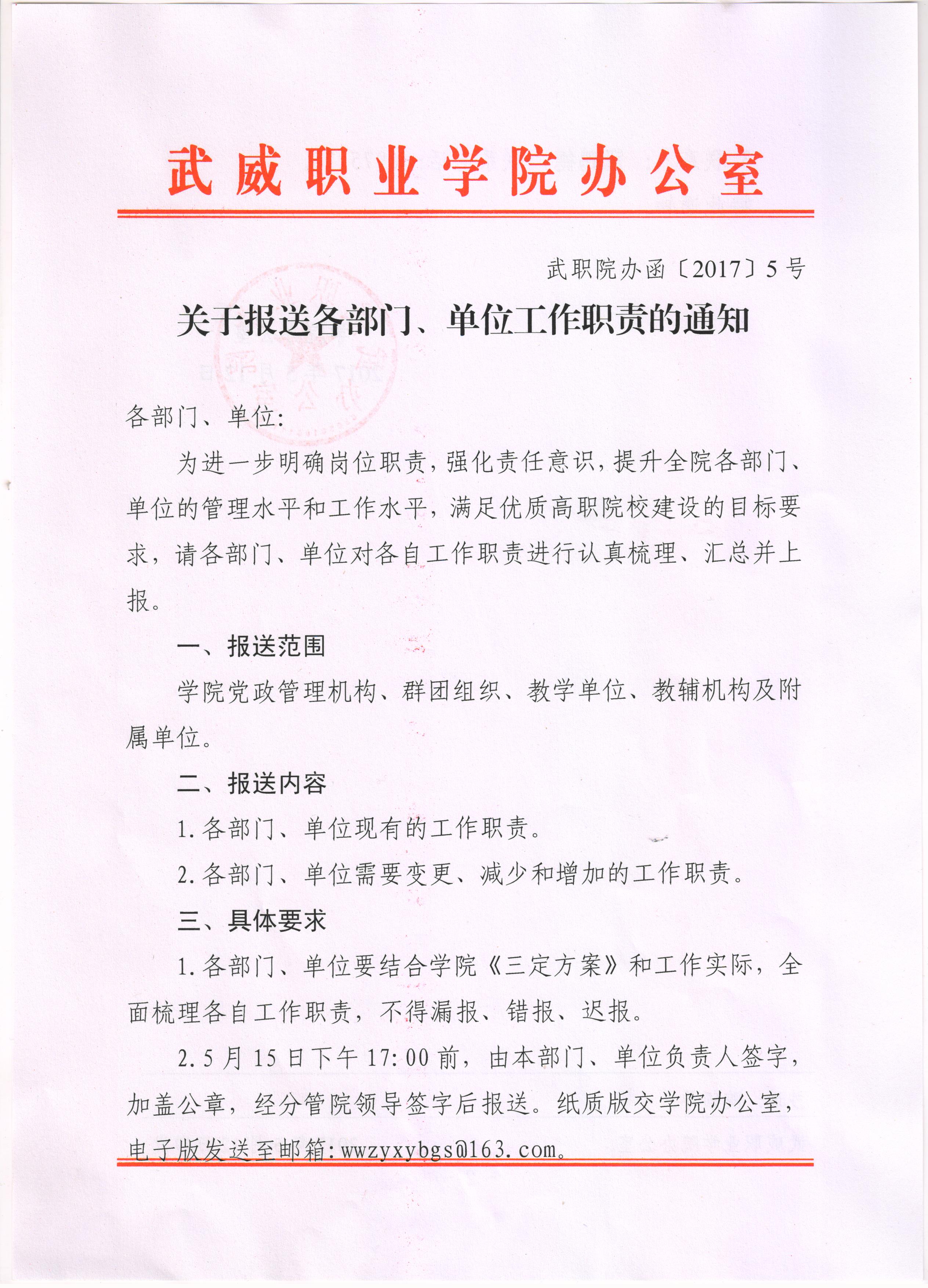 關于報送各部門、單位工作職責的通知