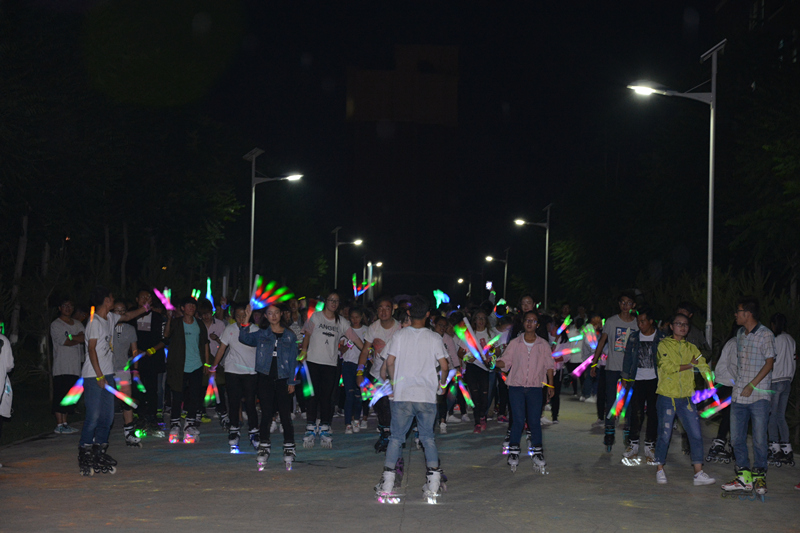 下午三點,學院團委宋文龍老師在啟動儀式上做了熱情洋溢的致辭,團學干部帶領參賽選手開啟了本次活動的奔跑。本次活動由“趣味沖關”“彩虹跑”“熒光夜跑”三個環(huán)節(jié)組成。“趣味沖關”由一系列小游戲組成,需要大家齊心協(xié)力、互相配合完成,同學們滿懷激情,在奔跑的同時體驗著合作的趣味與快樂。掌聲、笑聲、加油聲此起彼伏,選手與觀眾互動交流,整個過程充滿了愉悅的氣氛。下午五點開啟了整個活動中最精彩的“彩虹跑”,同學們手捧玉米粉在慢跑中相互揮灑,多彩的玉米粉在他們身上留下了青春的印記。隨著夜幕降臨,精彩的“熒光夜跑”活動隨之開始,同學們手帶熒光環(huán),舞動熒光棒,在輪滑社成員的帶領下繞著校園跑動。熒光點綴著夜色,歡快的音樂、青春的聲音充斥著整個校園。活動結束后,在學院東門小廣場舉行了自由晚會,同學們圍成一圈,在主持人的帶動下做互動小游戲、自由演唱,一陣陣歡聲笑語回蕩在整個校園。