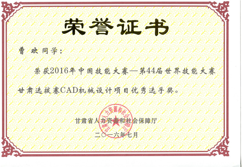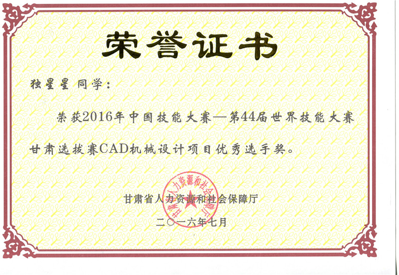 2016年中國技能大賽甘肅選拔賽CAD機(jī)械設(shè)計(jì)項(xiàng)目優(yōu)秀獎