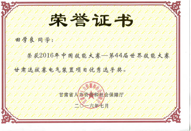 - 上一篇:2016年中國技能大賽甘肅選拔賽機(jī)電一體化技術(shù)項(xiàng)目優(yōu)秀獎(jiǎng)[ 06-21 ]