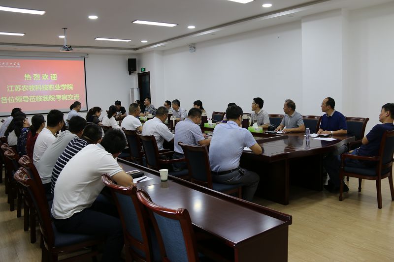 來(lái)賓對(duì)我院的人才培養(yǎng)定位、辦學(xué)特色、校園建設(shè)及產(chǎn)業(yè)發(fā)展表示贊賞。鄭義介紹了江蘇農(nóng)牧科技職業(yè)學(xué)院的發(fā)展歷史及目前在教學(xué)、科研、精神文明建設(shè)等方面的情況,并提出希望與我院進(jìn)行交流合作。
