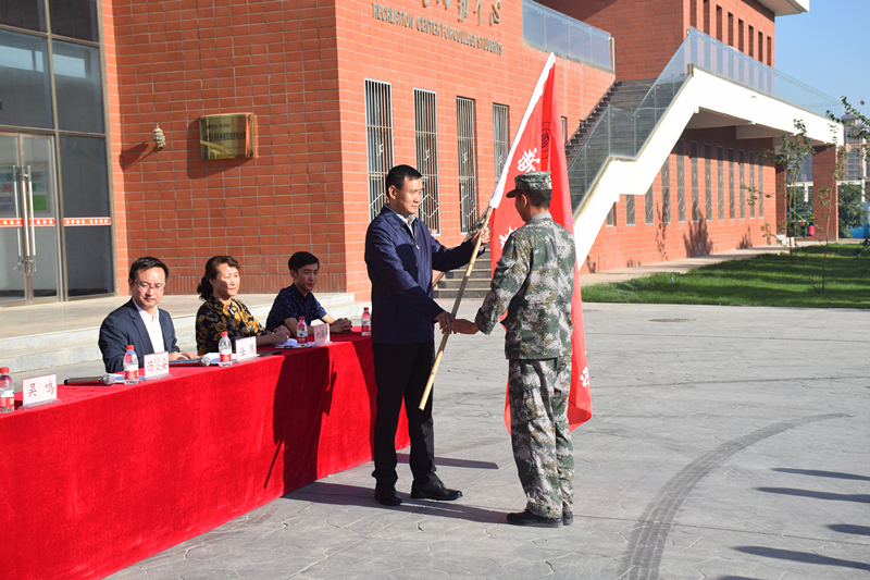 動(dòng)員大會(huì)在莊嚴(yán)的國(guó)歌聲中開(kāi)始,學(xué)院學(xué)工辦負(fù)責(zé)人劉菊萍就訓(xùn)練時(shí)間、訓(xùn)練紀(jì)律要求等方面做了具體的安排。軍訓(xùn)教官代表王雯和新生代表張林旺分別發(fā)言表態(tài)。湯旻安代表學(xué)院在會(huì)上作了軍訓(xùn)動(dòng)員講話。他強(qiáng)調(diào),同學(xué)們要在軍訓(xùn)過(guò)程中要提高認(rèn)識(shí)、端正態(tài)度,真正把軍訓(xùn)作為大學(xué)生的一門(mén)必修課;刻苦訓(xùn)練、認(rèn)真學(xué)習(xí),在訓(xùn)練中樹(shù)立不怕苦、不怕累的精神,確保訓(xùn)練效果;嚴(yán)格要求、強(qiáng)化管理,確保軍訓(xùn)工作緊張、有序、安全;講文明樹(shù)新風(fēng)、除陋習(xí)展形象,樹(shù)立良好風(fēng)尚,展示新時(shí)代大學(xué)生的風(fēng)采;以人為本、科學(xué)施訓(xùn),確保軍訓(xùn)工作取得實(shí)效。最后,由湯旻安向軍訓(xùn)教官授旗,標(biāo)志著2017級(jí)新生軍訓(xùn)正式拉開(kāi)帷幕。
