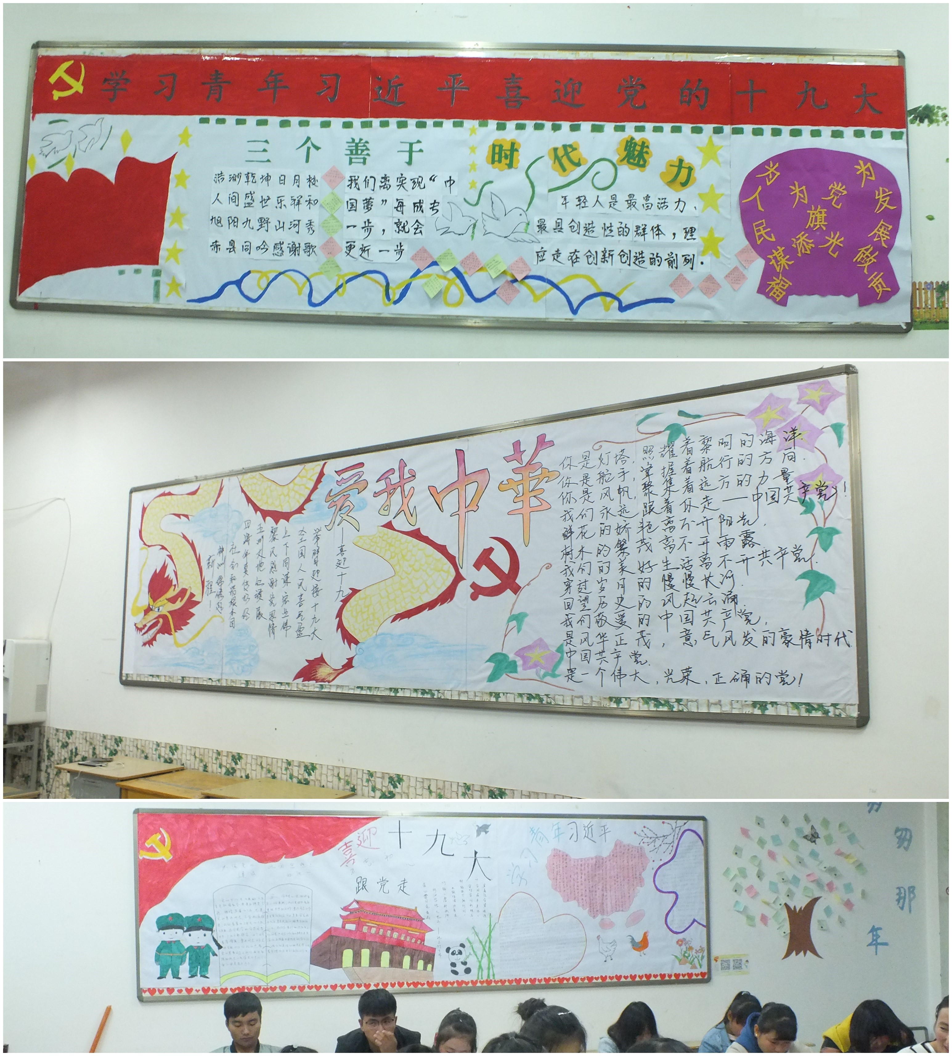 各班團(tuán)支部緊緊圍繞“學(xué)習(xí)青年習(xí)近平,喜迎黨的十九大”這一主題,精心的設(shè)計(jì),圖文并茂,內(nèi)容豐富,制作完成了形式多樣的黑板報(bào)。由系團(tuán)總支對(duì)各班團(tuán)支部制作的黑板報(bào)進(jìn)行了檢查評(píng)比。經(jīng)過現(xiàn)場(chǎng)打分,最終評(píng)定16級(jí)中藥學(xué)2班、16級(jí)藥學(xué)3班和17級(jí)中藥學(xué)2班為黑板報(bào)制作優(yōu)秀團(tuán)支部。