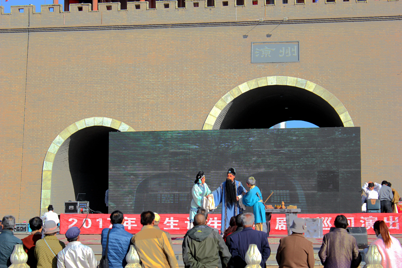 上午10.00時許,秦腔《皇甫謐》在露天舞臺正式演出?,演員們精彩的表演吸引了數(shù)百名群眾駐足觀看,場面十分熱烈。