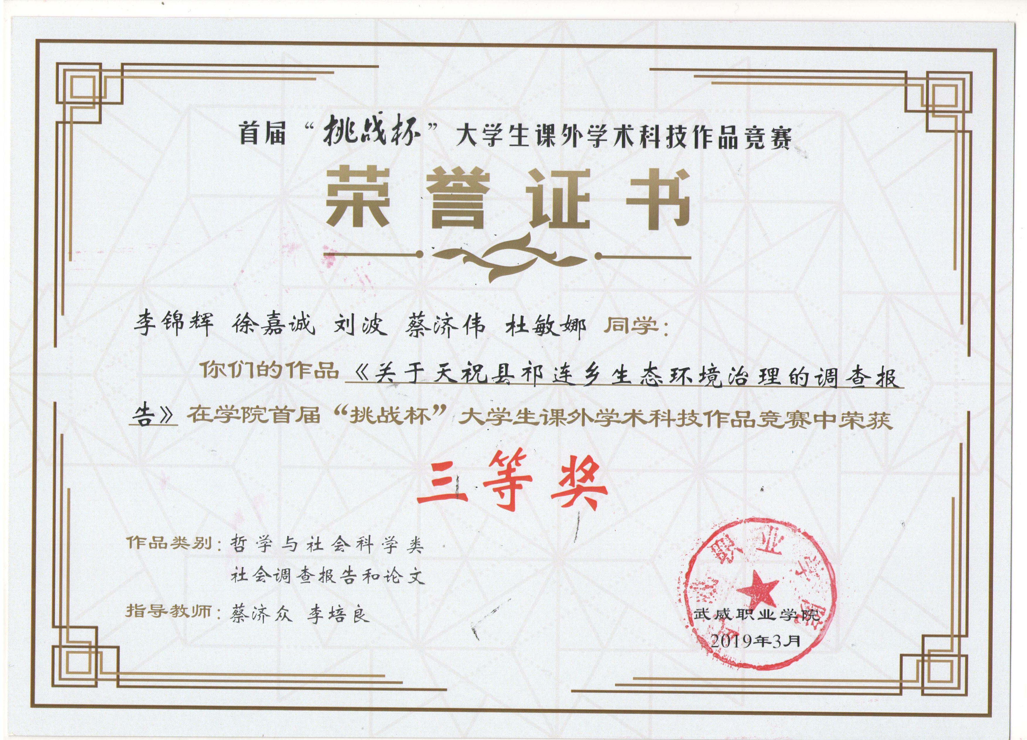武威職業(yè)學(xué)院首屆“挑戰(zhàn)杯”大學(xué)生課外學(xué)術(shù)科技作品《關(guān)于天祝縣祁連山生態(tài)環(huán)境治理的調(diào)查報(bào)告》