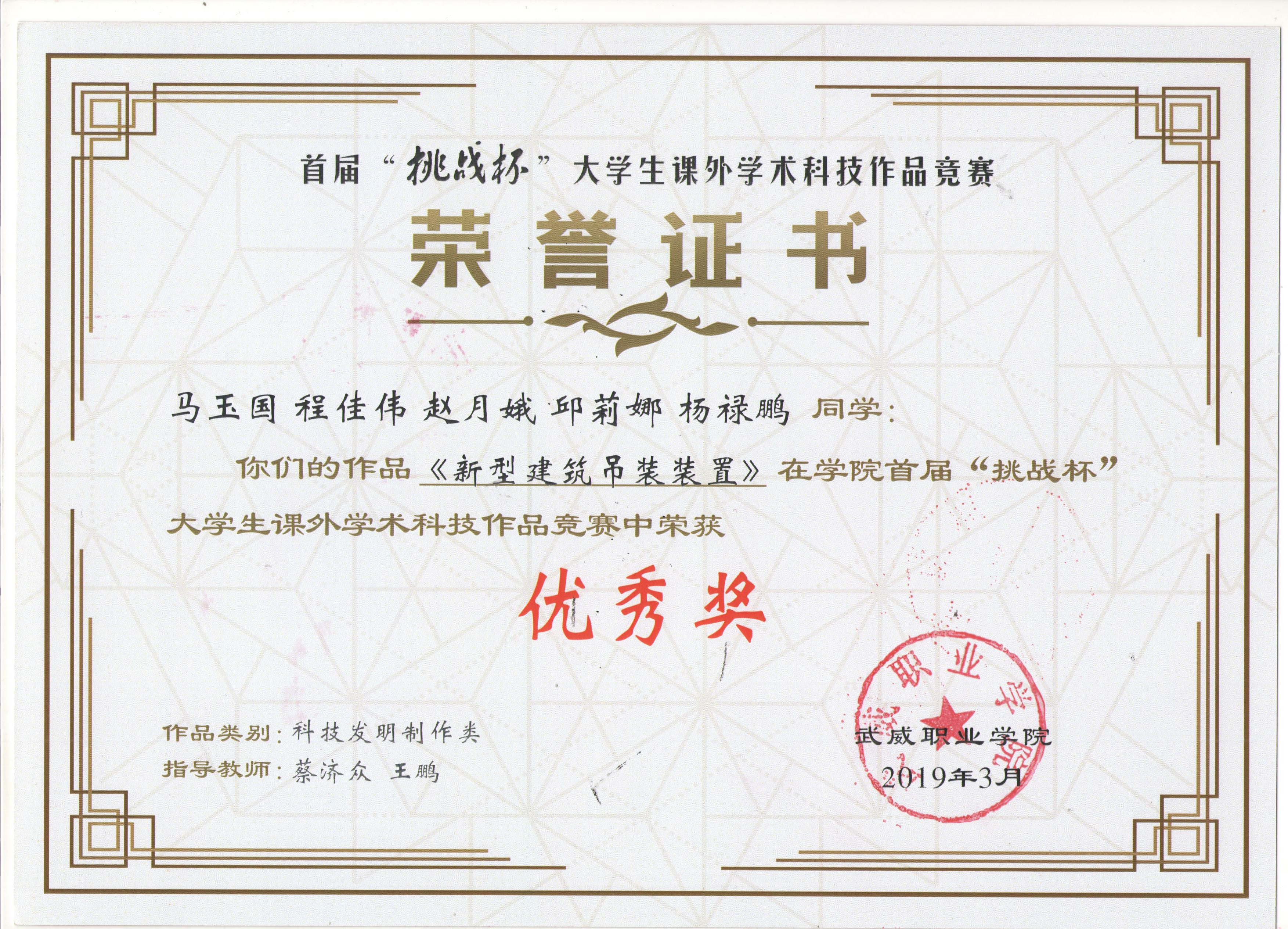 武威職業(yè)學(xué)院首屆“挑戰(zhàn)杯”大學(xué)生課外學(xué)術(shù)科技作品《新型建筑吊裝裝置》