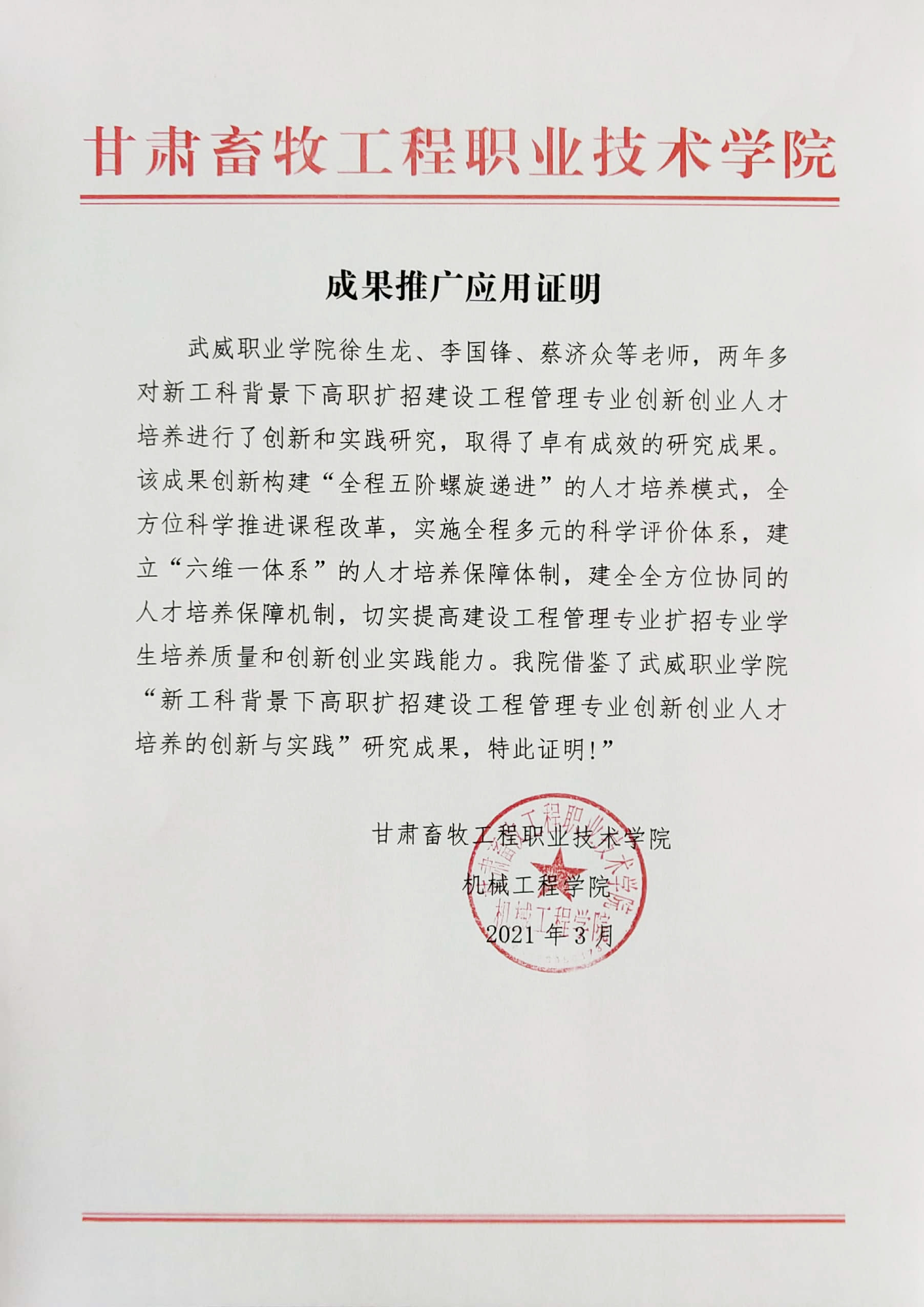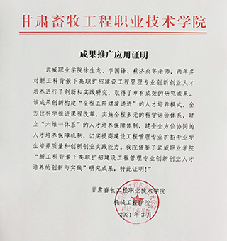 成果推廣應(yīng)用證明(甘肅畜牧工程職業(yè)技術(shù)學(xué)院)