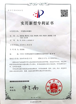 2019年12月項(xiàng)目組成員趙特慶獲得國家實(shí)用性專利授權(quán)1項(xiàng)